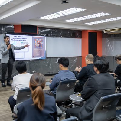Assoc. Prof. Suku Sukunesan สาธิตความสามารถของเครื่องมือ AI ผ่านการสร้างสื่อต่าง ๆ เช่น วิดีโอแอนิเมชันโฆษณาที่ใช้เวลาทำเพียงไม่กี่วินาที และการใช้แอปพลิเคชัน Suno ในการแต่งเพลงอย่างรวดเร็ว นอกจากนี้วิทยากรยังได้แนะนำให้คณาจารย์รู้จักกับเทคโนโลยี RAG (Retrieval-Augmented Generation) หรือ Grounded AI ซึ่งเป็นระบบที่จำกัดให้ AI ดึงข้อมูลจากฐานข้อมูลหรือเอกสารที่เรากำหนดเท่านั้น เพื่อช่วยควบคุมและลดปัญหาการให้ข้อมูลผิดพลาดหรือการสร้างข้อมูลเท็จ (Hallucination) ของระบบ AI ทำให้สามารถนำไปประยุกต์ใช้กับการเรียนการสอนได้อย่างแม่นยำยิ่งขึ้น ทั้งนี้ ข้อควรระวังในการใช้งาน AI ประกอบด้วย ด้านลิขสิทธิ์ การรั่วไหลของทรัพย์สินทางปัญญา (IP) และอคติของข้อมูล (Bias) ที่แฝงมากับระบบ “การเปิดรับและทดลองใช้งานเครื่องมือ AI ต่าง ๆ โดยการลงมือปฏิบัติลองผิดลองถูก เพื่อให้เกิดการเรียนรู้และปรับตัวได้อย่างทันท่วงที”