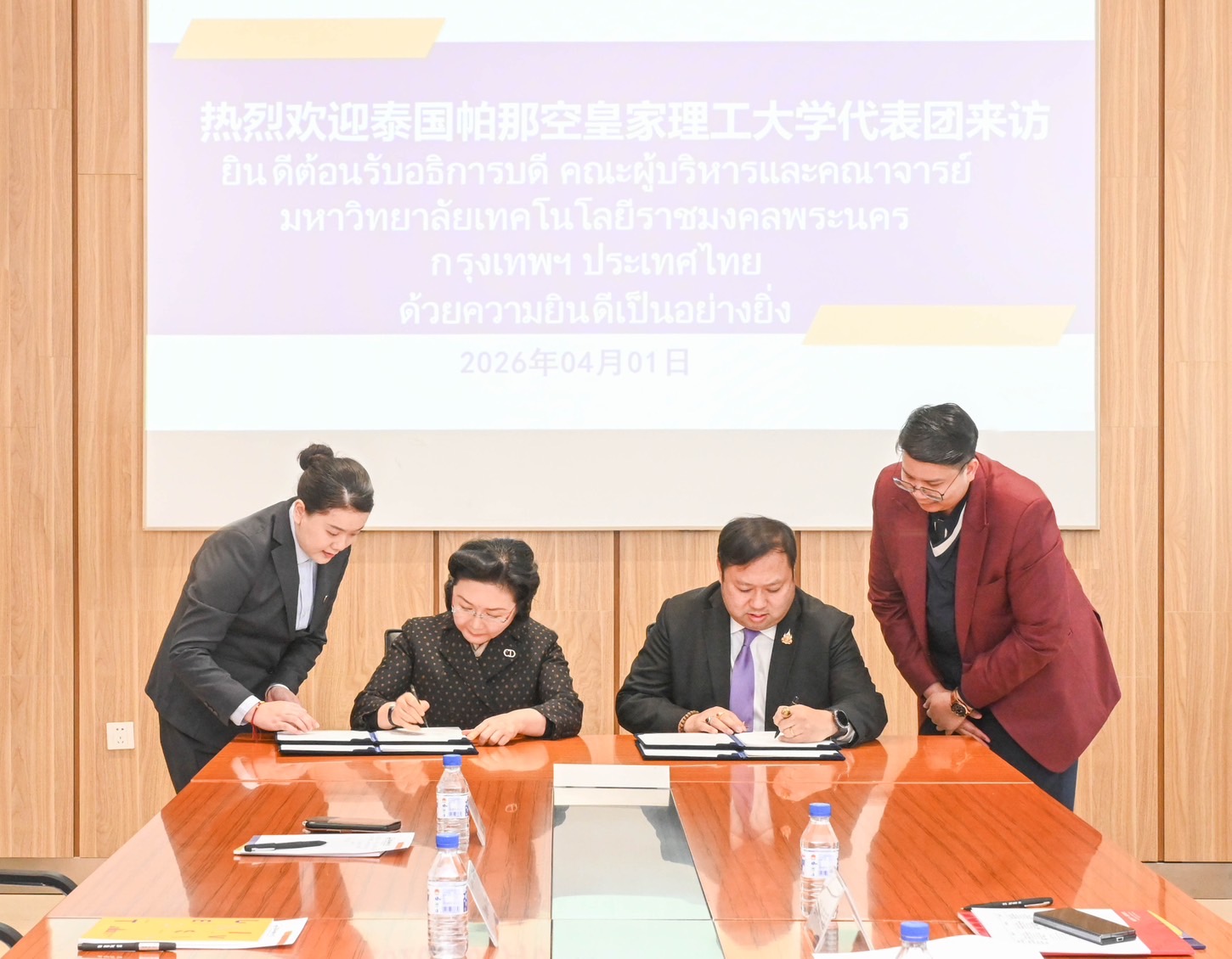 มหาวิทยาลัยเทคโนโลยีราชมงคลพระนคร (ราชมงคลพระนคร) เดินหน้าขยายเครือข่ายความร่วมมือทางวิชาการระดับนานาชาติ เพื่อส่งเสริมด้านการศึกษา การวิจัย และการแลกเปลี่ยนบุคลากรกับสถาบันอุดมศึกษาชั้นนำของสาธารณรัฐประชาชนจีน ระหว่างวันที่ 31 มีนาคม – 3 เมษายน 2569 โดยมี ดร.ณัฐวรพล รัชสิริวัชรบุล อธิการบดี ผศ.ดร.ปริญญ์ บุญกนิษฐ รองอธิการบดี อาจารย์วิไลลักษณ์ หัวหน้าสาขาวิชาภาษาไทยประยุกต์ และอาจารย์ปริวรรต นาครักษา อาจารย์ประจำสาขาวิชาภาษาไทยประยุกต์ คณะศิลปศาสตร์ ร่วมหารือความร่วมมือทางวิชาการ
