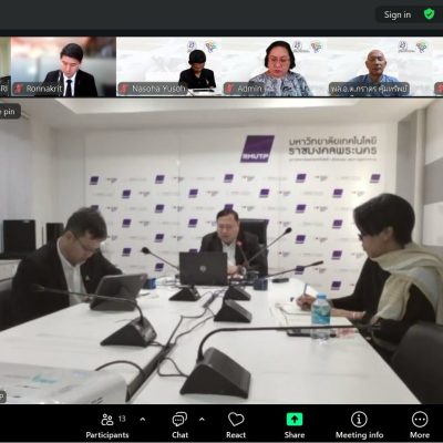 ดร.ณัฐวรพล รัชสิริวัชรบุล รักษาราชการแทนอธิการบดีมหาวิทยาลัยเทคโนโลยีราชมงคลพระนคร พร้อมด้วยคณะผู้บริหาร ประกอบด้วย ดร.พุทธิพงศ์ เลขะชัยวรกุล ผู้ช่วยอธิการบดี, นางสาวมัลลิกา วีระสัย ผู้อำนวยการกองพัฒนานักศึกษา, รศ.ดร.รุ่งอรุณ พรเจริญ คณบดีคณะครุศาสตร์อุตสาหกรรม, และดร.ศรีสุดา อินทมาศ รองคณบดีฝ่ายกิจการนักศึกษา คณะบริหารธุรกิจ ได้เข้าร่วมประชุมออนไลน์กับ มูลนิธิพัฒนาศักยภาพคนพิการและศูนย์เรียนรู้ร่วมเพื่อการพัฒนาศักยภาพคนพิการจังหวัดชายแดนใต้ นำโดย พลอากาศตรีภราดร คุ้มทรัพย์, คุณรณกริษฐ์ เอื้อพิพัฒนากูล ที่ปรึกษามูลนิธิฯ และคณะ ณ ห้องประชุมงานสื่อสารองค์การ กองกลาง อาคารรพีพัฒนศักดิ์         ราชมงคลพระนคร ศูนย์เทเวศร์ เมื่อวันที่ 8 ธันวาคม 2568