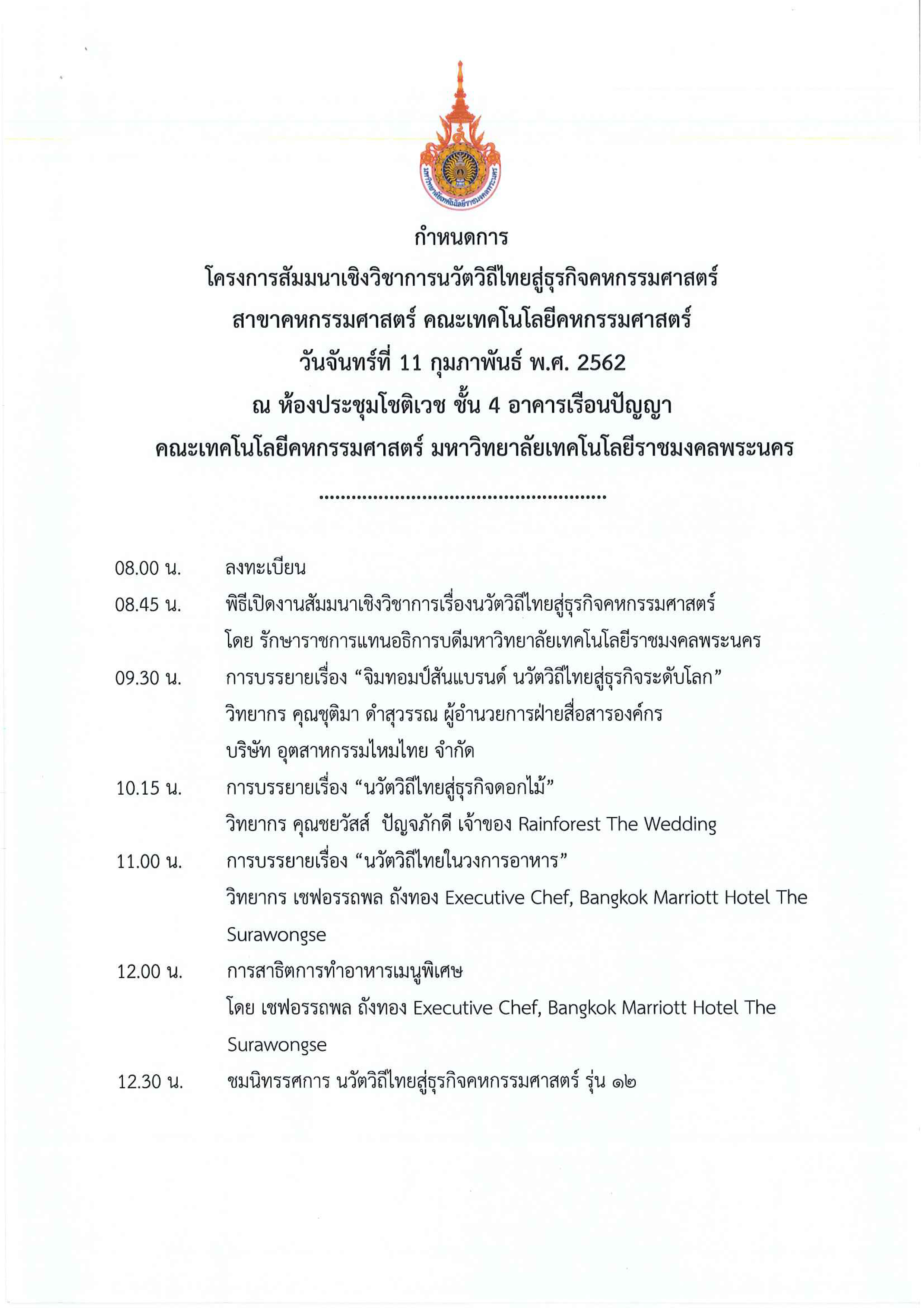 Events ขอเชิญผู้สนใจเข้าร่วมสัมมนา เรื่องนวัตวิถีไทยสู่ธุรกิจคหกรรมศาสตร์ (ฟรี) Posted 11 February 20195 February 2019 rmutp ขอเชิญผู้สนใจ เข้าร่วมสัมมนา(ฟรี) เรื่องนวัตวิถีไทยสู่ธุรกิจคหกรรมศาสตร์ ในวันที่ 11 กุมภาพันธ์ 2562 เวลา 08.00-13.00 น. ณ ชั้น 4 อาคารเรือนปัญญา คณะเทคโนโลยีคหกรรมศาสตร์ มหาวิทยาลัยเทคโนโลยีราชมงคลพระนคร ศูนย์โชติเวช