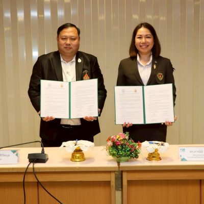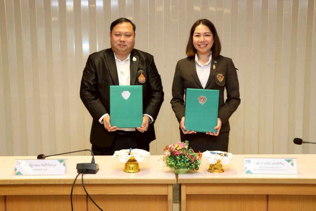 ดร.ณัฐวรพล รัชสิริวัชรบุล รักษาราชการแทนอธิการบดี มหาวิทยาลัยเทคโนโลยีราชมงคลพระนคร ลงนามความร่วมมือทางวิชาการกับ ดร.ภาณินี แสงหิรัญ ผู้จัดการและรองผู้อำนวยการ วิทยาลัยเทคโนโลยีบริหารธุรกิจสมุทรปราการ ณ วิทยาลัยเทคโนโลยีบริหารธุรกิจสมุทรปราการ อำเภอบางพลี จังหวัดสมุทรปราการ เมื่อวันที่ 8 ธันวาคม 2568