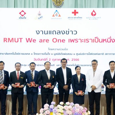 ดร.ณัฐวรพล รัชสิริวัชรบุล อธิการบดีมหาวิทยาลัยเทคโนโลยีราชมงคลพระนคร พร้อมทั้งผู้บริหารมหาวิทยาลัยเทคโนโลยีราชมงคลอีก 8 แห่ง ประกอบด้วย มหาวิทยาลัยเทคโนโลยีราชมงคลธัญบุรี มหาวิทยาลัยเทคโนโลยีราชมงคลกรุงเทพ มหาวิทยาลัยเทคโนโลยีราชมงคลตะวันออก มหาวิทยาลัยเทคโนโลยีราชมงคลอีสาน มหาวิทยาลัยเทคโนโลยีราชมงคลรัตนโกสินทร์ มหาวิทยาลัยเทคโนโลยีราชมงคลล้านนา มหาวิทยาลัยเทคโนโลยี ราชมงคลศรีวิชัย และมหาวิทยาลัยเทคโนโลยีราชมงคลสุวรรณภูมิ ได้ร่วมกันแถลงข่าวเปิดตัวแคมเปญ “RMUT We are One เพราะเราเป็นหนึ่ง” ณ หอประชุมอาคารสำนักงานอธิการบดี มหาวิทยาลัยเทคโนโลยีราชมงคลกรุงเทพ เมื่อวันที่ 2 ตุลาคม 2566