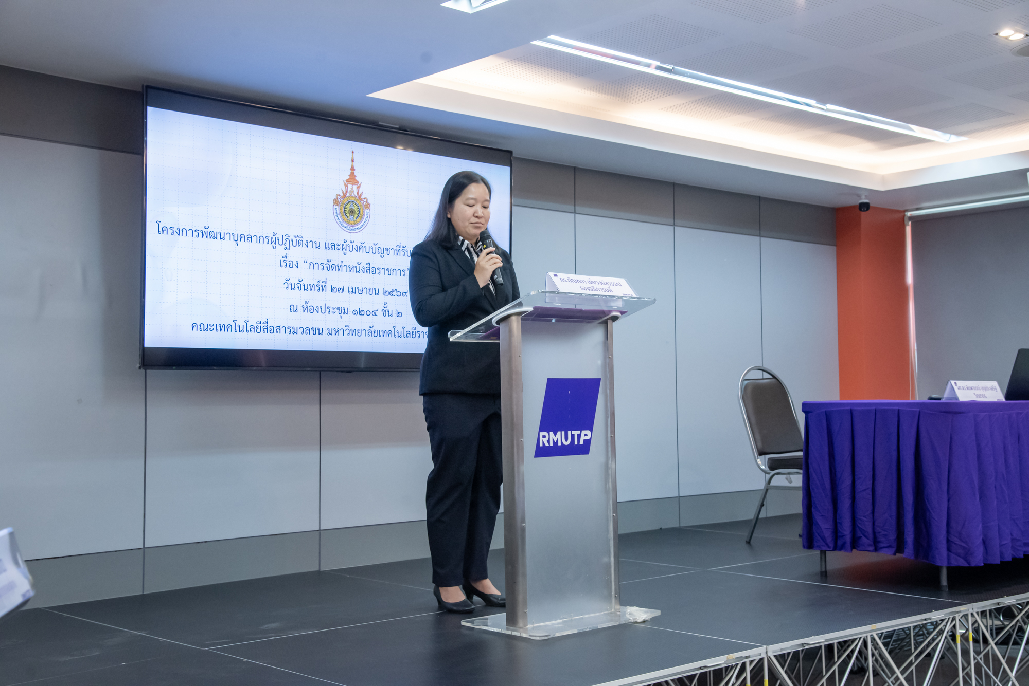 ดร.มัณฑนา เตี๋ยวงษ์สุวรรณ์ รองอธิการบดีมหาวิทยาลัยเทคโนโลยีราชมงคลพระนคร เป็นประธานเปิดโครงการพัฒนาบุคลากรผู้ปฏิบัติงานและผู้บังคับบัญชาที่รับผิดชอบงานด้านสารบรรณ เรื่อง การจัดทำหนังสือราชการ โดยมีบุคลากรผู้ปฏิบัติงานและผู้บังคับบัญชา ที่รับผิดชอบงานด้านสารบรรณของมหาวิทยาลัยเข้าร่วม จำนวน 50 คน ณ ห้องประชุม 1204 ชั้น 2 คณะเทคโนโลยีสื่อสารมวลชน ราชมงคลพระนคร ศูนย์เทเวศร์ เมื่อวันที่ 27 เมษายน 2569