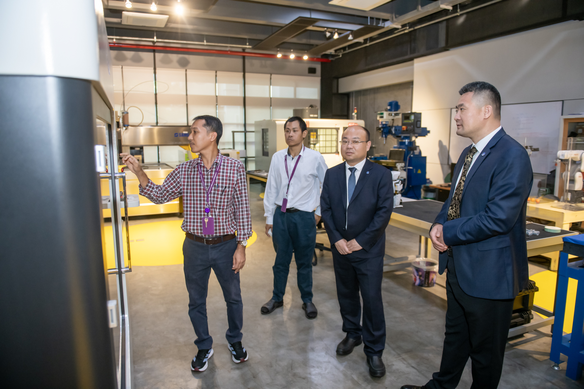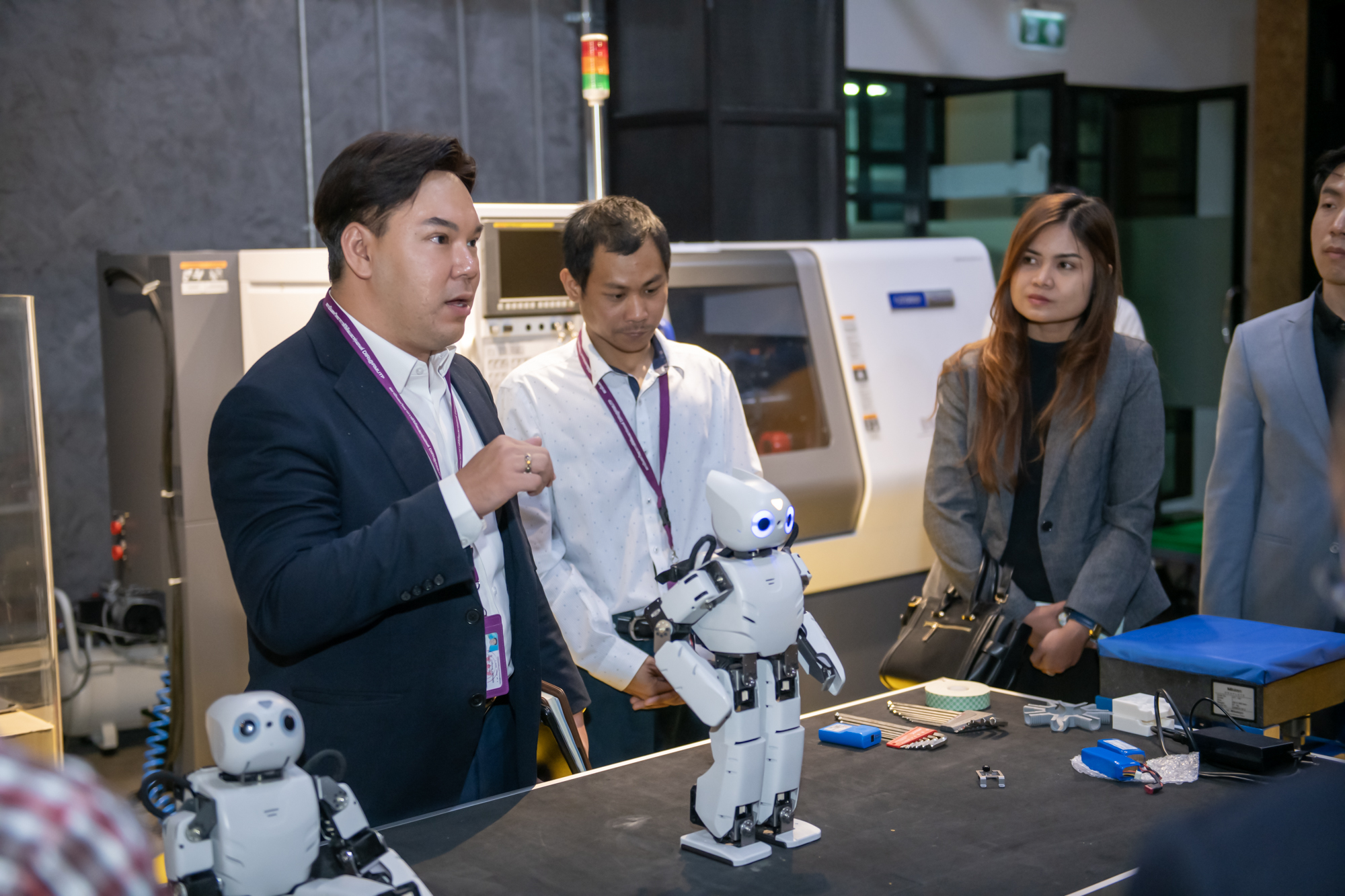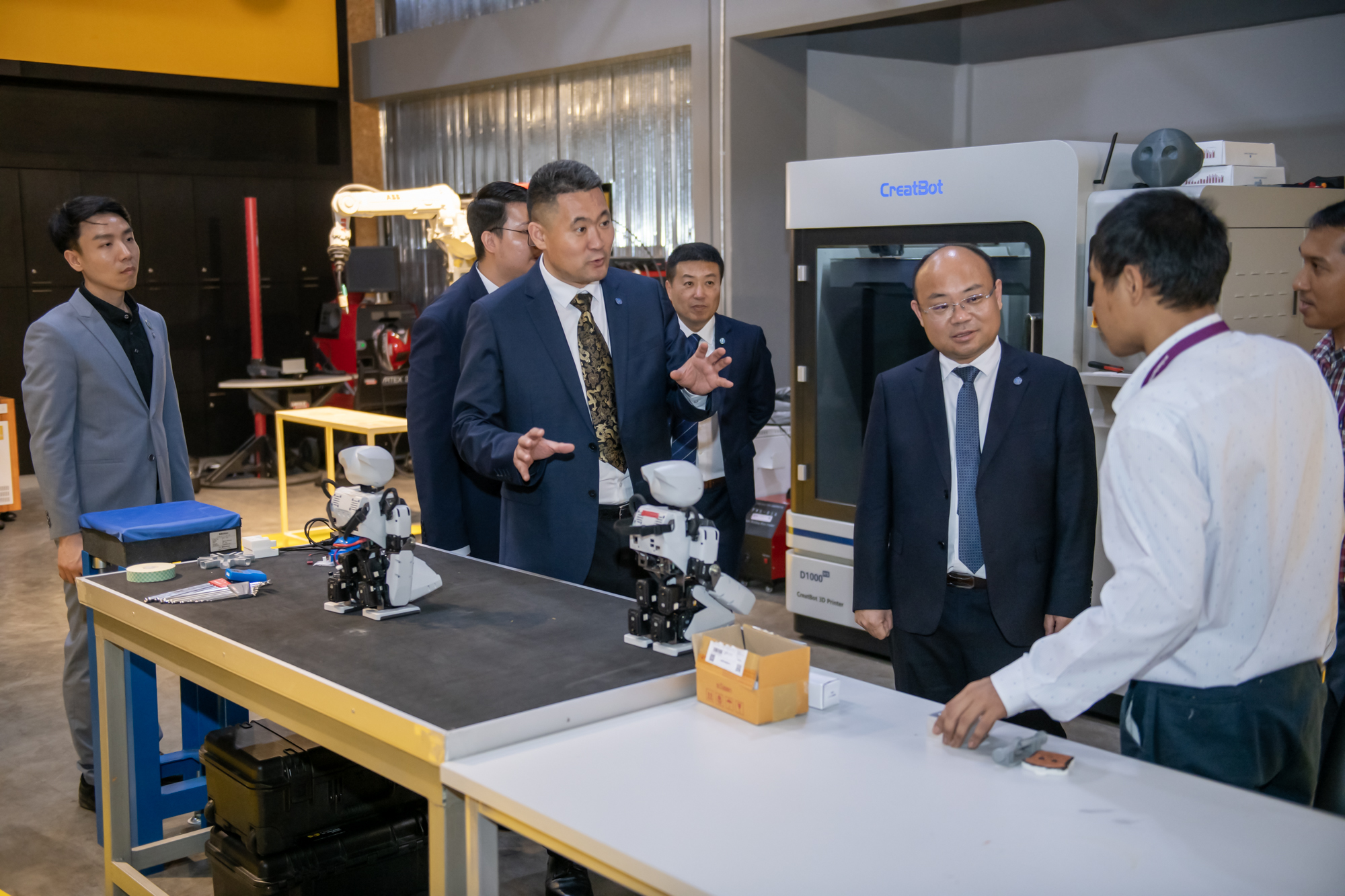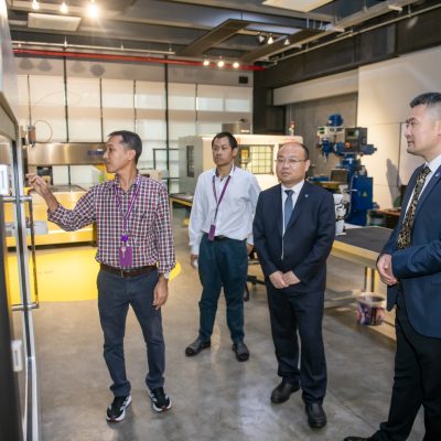 ในโอกาสเดียวกัน คณะผู้บริหารจากประเทศจีนยังได้เข้าศึกษาดูงาน ณ สถาบันสหวิทยาการดิจิทัลและหุ่นยนต์ แลกเปลี่ยนองค์ความรู้และเยี่ยมชมห้องปฏิบัติการที่ทันสมัย อาทิ ห้องปฏิบัติการการเชื่อมเสมือนจริง ห้องปฏิบัติการหุ่นยนต์ทำงานร่วมกับมนุษย์ หรือ Collaborative Robot (COBOT) ตลอดจนการประยุกต์ใช้เทคโนโลยีการประมวลผลภาพด้วยปัญญาประดิษฐ์ ซึ่งเชื่อมโยงกับหลักการวิศวกรรมย้อนรอย (Reverse Engineering) และเทคโนโลยีการพิมพ์สามมิติ (3D Printing) อีกทั้งยังได้เยี่ยมชมห้อง Digital Broadcast ที่สนับสนุนการเรียนรู้เชิงบูรณาการอย่างครบวงจร