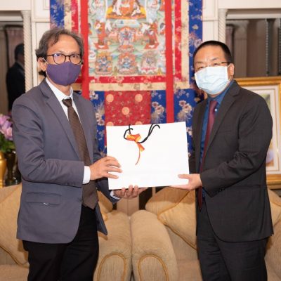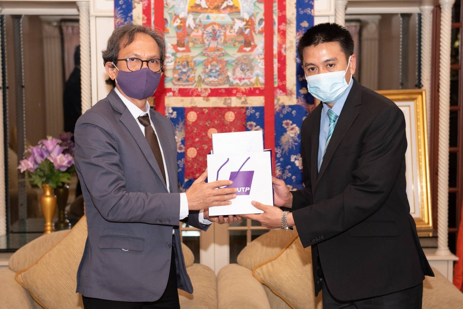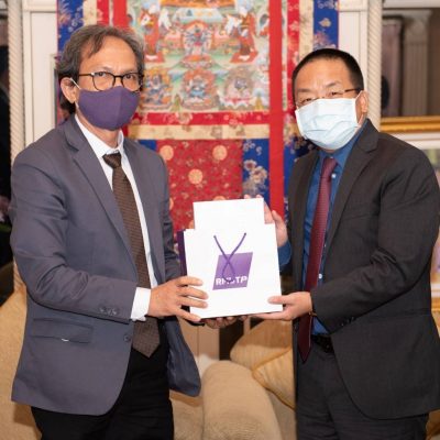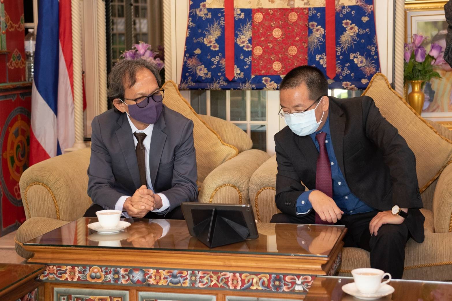 ผศ.สหรัตน์ วงษ์ศรีษะ รักษาราชการแทนอธิการบดี มหาวิทยาลัยเทคโนโลยีราชมงคลพระนคร พร้อมด้วยผู้บริหาร อาจารย์ เข้าพบ H.E.Mr.Tshewang Chophel Dorji Ambassdor Extraordinary and Plenipotentiary เอกอัครราชทูตภูฏานประจำประเทศไทย พร้อมนำเสนอผลงาน Animation Project ซึ่งจัดทำในรูปแบบแอนิเมชั่น 3 มิติ เรื่องส่งต่อความสุข (The Gift) จัดทำโดยนักศึกษาชั้นปีที่ 4 สาขาเทคโนโลยีมัลติมีเดีย คณะเทคโนโลยีสื่อสารมวลชน ซึ่งจะนำไปเผยแพร่ในวาระโอกาสครบรอบความสัมพันธ์ทางการทูตระหว่างไทย – ภูฏาน ประจำปี 2564 นอกจากนี้ยังร่วมหารือเกี่ยวกับนักศึกษาภูฏานที่เข้าศึกษาต่อมทร.พระนคร ในภาคการศึกษาที่ 2/2563 เมื่อวันที่ 26 พฤศจิกายน 2563 ณ สถานเอกอัครราชทูตภูฏาน