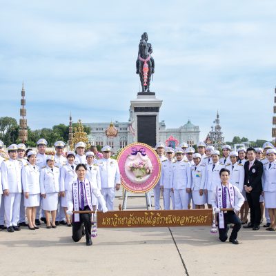 ดร.ณัฐวรพล รัชสิริวัชรบุล อธิการบดีมหาวิทยาลัยเทคโนโลยีราชมงคลพระนคร (ราชมงคลพระนคร) พร้อมด้วย นายบัณฑิต ปานรักษา นายกสมาคมศิษย์เก่าราชมงคลพระนคร ผศ.ดร.กษิดิ์เดช สุทธิวานิช รองอธิการบดี ดร.คมเขต เพ็ชรรัตน์ รองอธิการบดี และ รศ.ดร.นัฐโชติ รักไทยเจริญชีพ รองอธิการบดี ได้นำทีมคณาจารย์ บุคลากร ตลอดจนนักศึกษา เข้าร่วมพิธีวางพวงมาลาถวายสักการะพระบรมราชานุสาวรีย์ พระบาทสมเด็จพระจุลจอมเกล้าเจ้าอยู่หัว รัชกาลที่ 5 ณ พระบรมราชานุสรณ์ ลานพระราชวังดุสิต (ลานพระบรมรูปทรงม้า) เมื่อวันที่ 23 ตุลาคม 2568