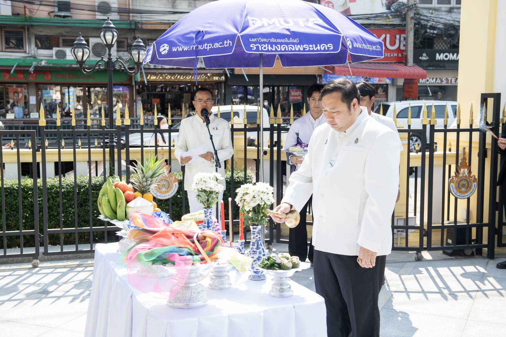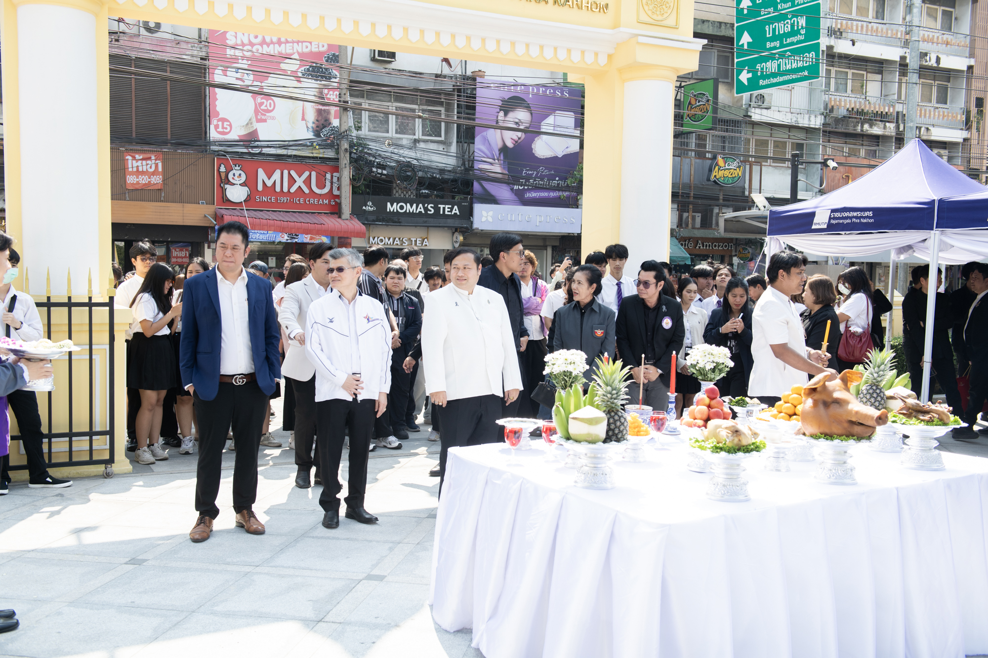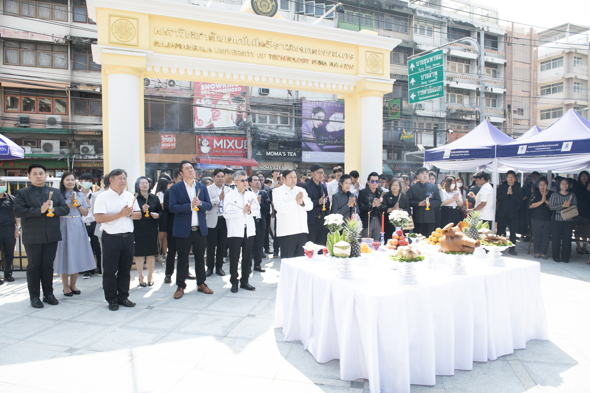 ทั้งนี้เริ่มต้นพิธี ณ ศูนย์พระนครเหนือ เวลา 08.30 น. ดร.ณัฐวรพล รัชสิริวัชรบุล เป็นประธานในพิธีสักการะหอพระประจำศูนย์ สักการะองค์พระวิษณุกรรม สักการะศาลพระภูมิเจ้าที่ และศาลตายาย จากนั้นเวลา 09.30 น. เดินทางไปยัง ศูนย์พณิชยการพระนคร เพื่อสักการะพระอนุสาวรีย์ พลเรือเอกพระเจ้าบรมวงศ์เธอฯ กรมหลวงชุมพรเขตอุดมศักดิ์ สักการะศาลพระภูมิชัยมงคล คณะศิลปศาสตร์ ต่อด้วยพิธีสักการะศาลกรมหลวงชุมพรเขตอุดมศักดิ์ คณะอุตสาหกรรมสิ่งทอและออกแบบแฟชั่น ต่อมาเวลา 10.00 น. เดินทางไปยังศูนย์โชติเวช สักการะพระเจดีย์ บริเวณอาคารเรือนปัญญา และสักการะหุ่นจำลอง คุณตาต่วน โชติเวช และเวลา 11.00 น. เดินทางไปยังศูนย์เทเวศร์ เพื่อสักการะพระอนุสาวรีย์ พระเจ้าบรมวงศ์เธอ ฯ กรมหลวงราชบุรีดิเรกฤทธิ์