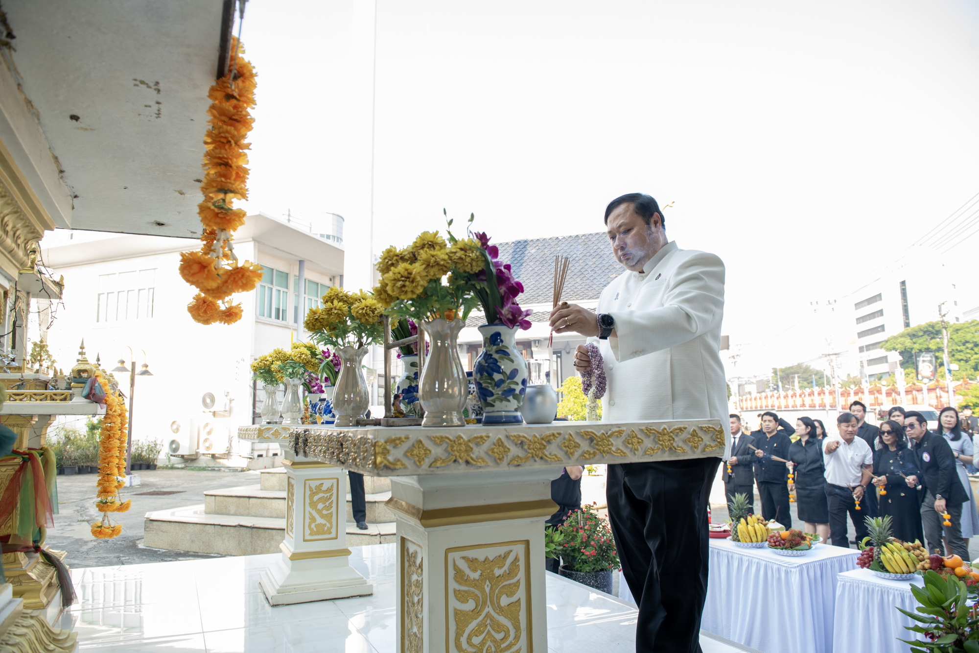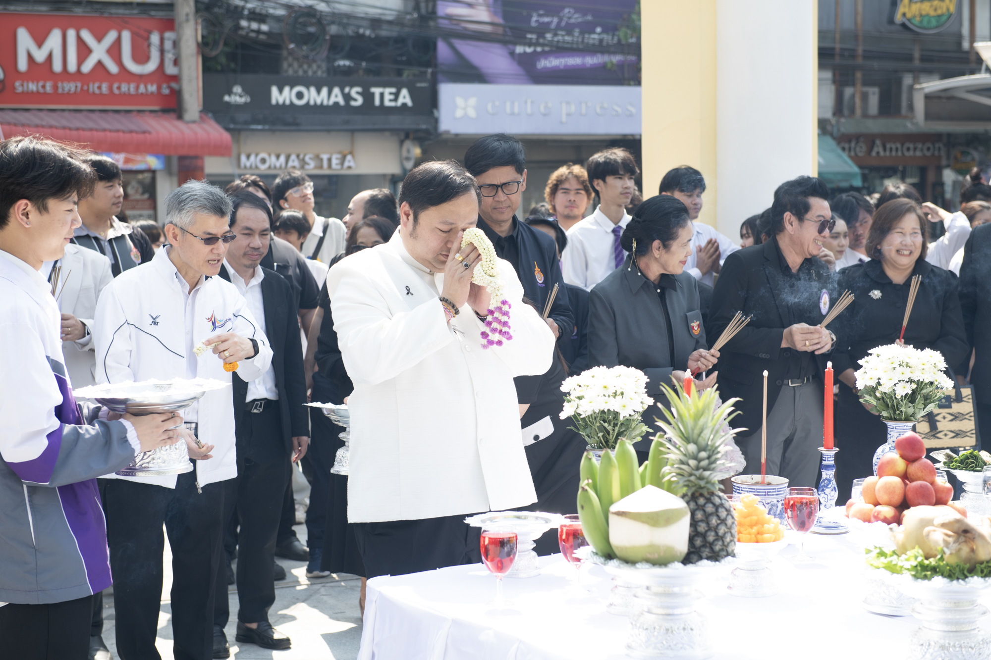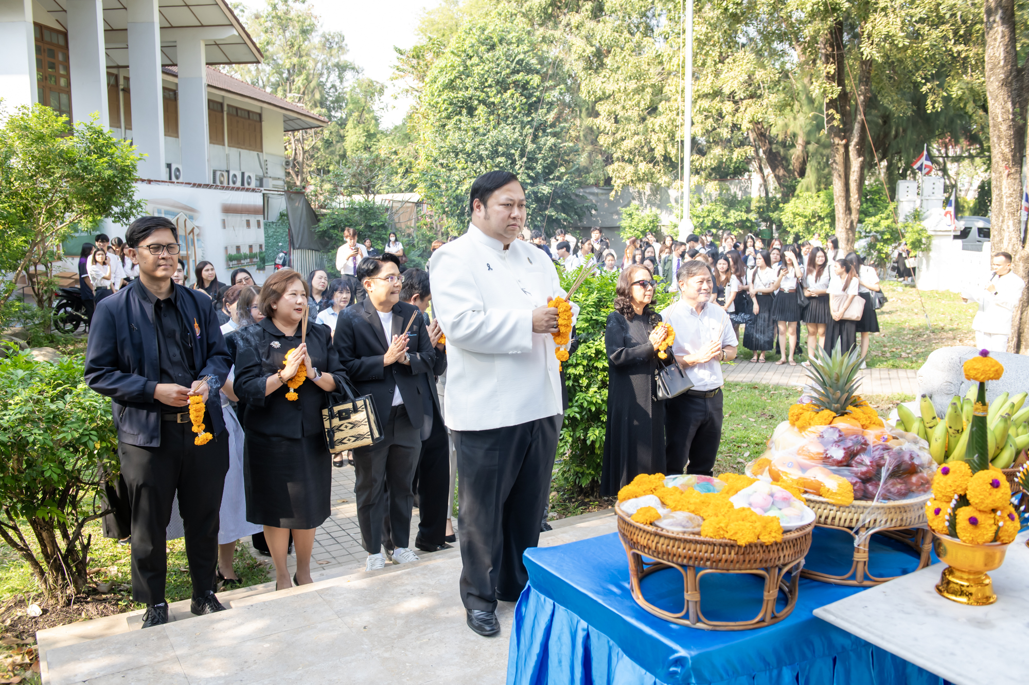 ทั้งนี้เริ่มต้นพิธี ณ ศูนย์พระนครเหนือ เวลา 08.30 น. ดร.ณัฐวรพล รัชสิริวัชรบุล เป็นประธานในพิธีสักการะหอพระประจำศูนย์ สักการะองค์พระวิษณุกรรม สักการะศาลพระภูมิเจ้าที่ และศาลตายาย จากนั้นเวลา 09.30 น. เดินทางไปยัง ศูนย์พณิชยการพระนคร เพื่อสักการะพระอนุสาวรีย์ พลเรือเอกพระเจ้าบรมวงศ์เธอฯ กรมหลวงชุมพรเขตอุดมศักดิ์ สักการะศาลพระภูมิชัยมงคล คณะศิลปศาสตร์ ต่อด้วยพิธีสักการะศาลกรมหลวงชุมพรเขตอุดมศักดิ์ คณะอุตสาหกรรมสิ่งทอและออกแบบแฟชั่น ต่อมาเวลา 10.00 น. เดินทางไปยังศูนย์โชติเวช สักการะพระเจดีย์ บริเวณอาคารเรือนปัญญา และสักการะหุ่นจำลอง คุณตาต่วน โชติเวช และเวลา 11.00 น. เดินทางไปยังศูนย์เทเวศร์ เพื่อสักการะพระอนุสาวรีย์ พระเจ้าบรมวงศ์เธอ ฯ กรมหลวงราชบุรีดิเรกฤทธิ์