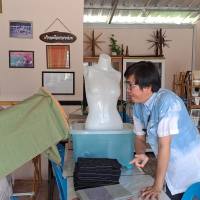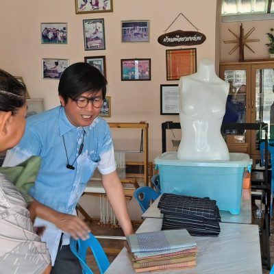 ดร.เกษม มานะรุ่งวิทย์ อาจารย์ประจำสาขาวิชาออกแบบผลิตภัณฑ์สิ่งทอ คณะอุตสาหกรรมสิ่งทอและออกแบบแฟชั่น มหาวิทยาลัยเทคโนโลยีราชมงคลพระนคร นำทีมคณาจารย์ จัดบริการวิชาการทางสังคม “การจัดการความรู้และถ่ายทอดเทคโนโลยีเพื่อสร้างมูลค่าเพิ่มให้กับผลิตภัณฑ์ผ้าขาวม้าทอมือ” ณ กลุ่มวิสาหกิจผลิตภัณฑ์ผ้าทอมือคุณยายหง่วน บ้านปึก จ.ชลบุรี ระหว่างวันที่ 29 เมษายน – 21 พฤษภาคม 2566 ภายใต้โครงการจัดการความรู้การวิจัยและถ่ายทอดเพื่อการใช้ประโยชน์ เรื่องการวิจัยและพัฒนาสุนทรียภาพและความคิดสร้างสรรค์ของด้านศิลปกรรม โดยบูรณาการความรู้ร่วมกับ มหาวิทยาลัยเกษตรศาสตร์ มหาวิทยาลัยเทคโนโลยีราชมงคลกรุงเทพ และอาจารย์จากคณะสถาปัตยกรรมศาสตร์และการออกแบบ คณะบริหารธุรกิจ ราชมงคลพระนคร โดยได้รับทุนสนับสนุนจากกองทุนส่งเสริมวิทยาศาสตร์ วิจัยและนวัตกรรม (วทน.) สำนักงานการวิจัยแห่งชาติ (วช.) ประจำปี 2566