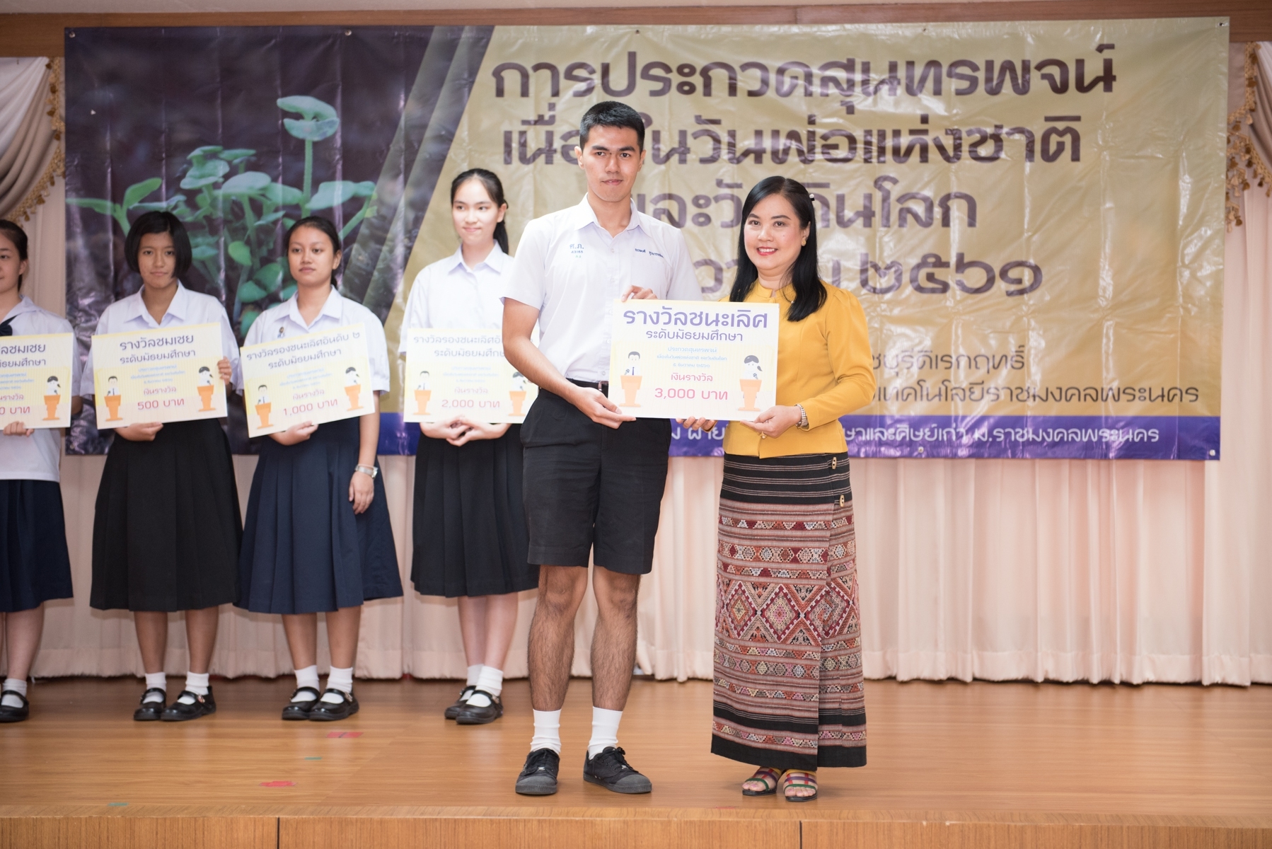 ทั้งนี้ รางวัลชนะเลิศ รับเงินรางวัล 3,000 บาท รางวัลรองชนะเลิศ อันดับ 1 เงินรางวัล 2,000 บาท รองชนะเลิศ อันดับ 2 เงินรางวัล 1,000 บาท และรางวัลชมเชย เงินรางวัล 500 บาท