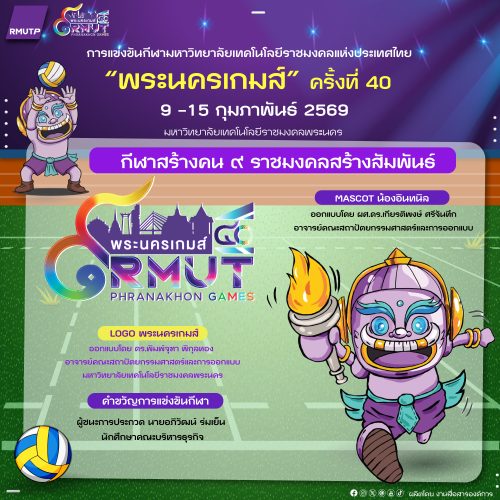 ดร.ณัฐวรพล รัชสิริวัชรบุล รักษาราชการแทนอธิการบดี มหาวิทยาลัยเทคโนโลยีราชมงคลพระนคร ในฐานะประธานคณะกรรมการการแข่งขันกีฬามหาวิทยาลัยเทคโนโลยีราชมงคลแห่งประเทศไทย ครั้งที่ 40 “พระนครเกมส์” มอบหมายให้ ผศ.ดร.กษิดิ์เดช สุทธิวานิช รองอธิการบดี ในฐานะรองประธานคณะกรรมการการแข่งขันกีฬาฯ และอาจารย์ฉลอง อภิวงค์ ประธานคณะอนุกรรมการฝ่ายเทคนิคกีฬาและกรรมการตัดสิน แถลงข่าวการแข่งขันกีฬามหาวิทยาลัยเทคโนโลยีราชมงคลแห่งประเทศไทย ครั้งที่ 40 “พระนครเกมส์” โดยภายในงานจัดให้มีการอัญเชิญถ้วยรางวัลกีฬารวม ถ้วยรางวัลพระราชทานสมเด็จพระกนิษฐาธิราชเจ้า กรมสมเด็จพระเทพรัตนราชสุดาฯ สยามบรมราชกุมารี การแสดงผู้นำเชียร์ เปิดตัวมาสคอต โลโก้ และเพลงประจำการแข่งขัน ฯลฯ ณ ห้องประชุมมงคลอาภา 3 อาคารมงคลอาภา มหาวิทยาลัยเทคโนโลยีราชมงคลพระนคร ศูนย์พณิชยการพระนคร เมื่อวันที่ 7 มกราคม 2569