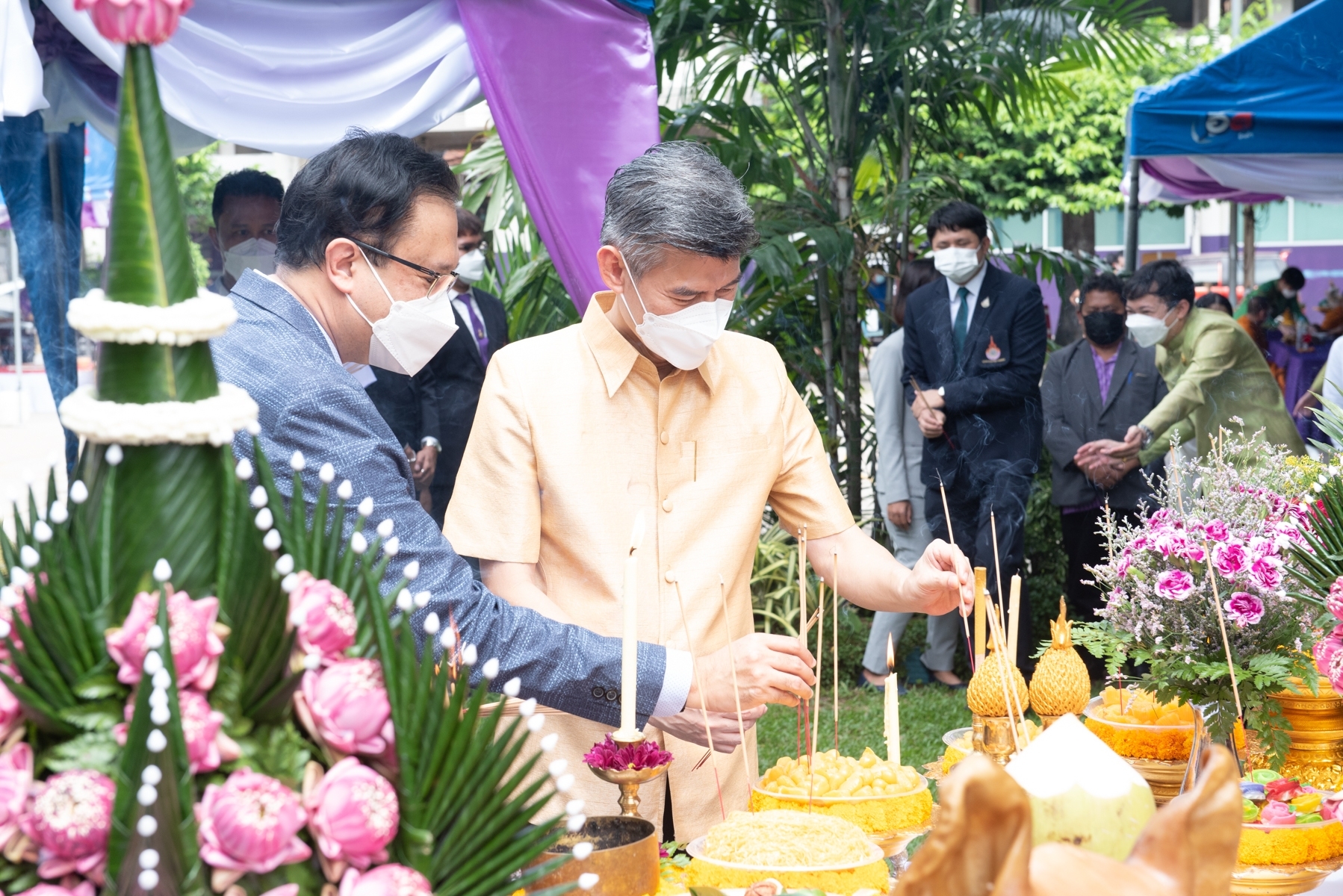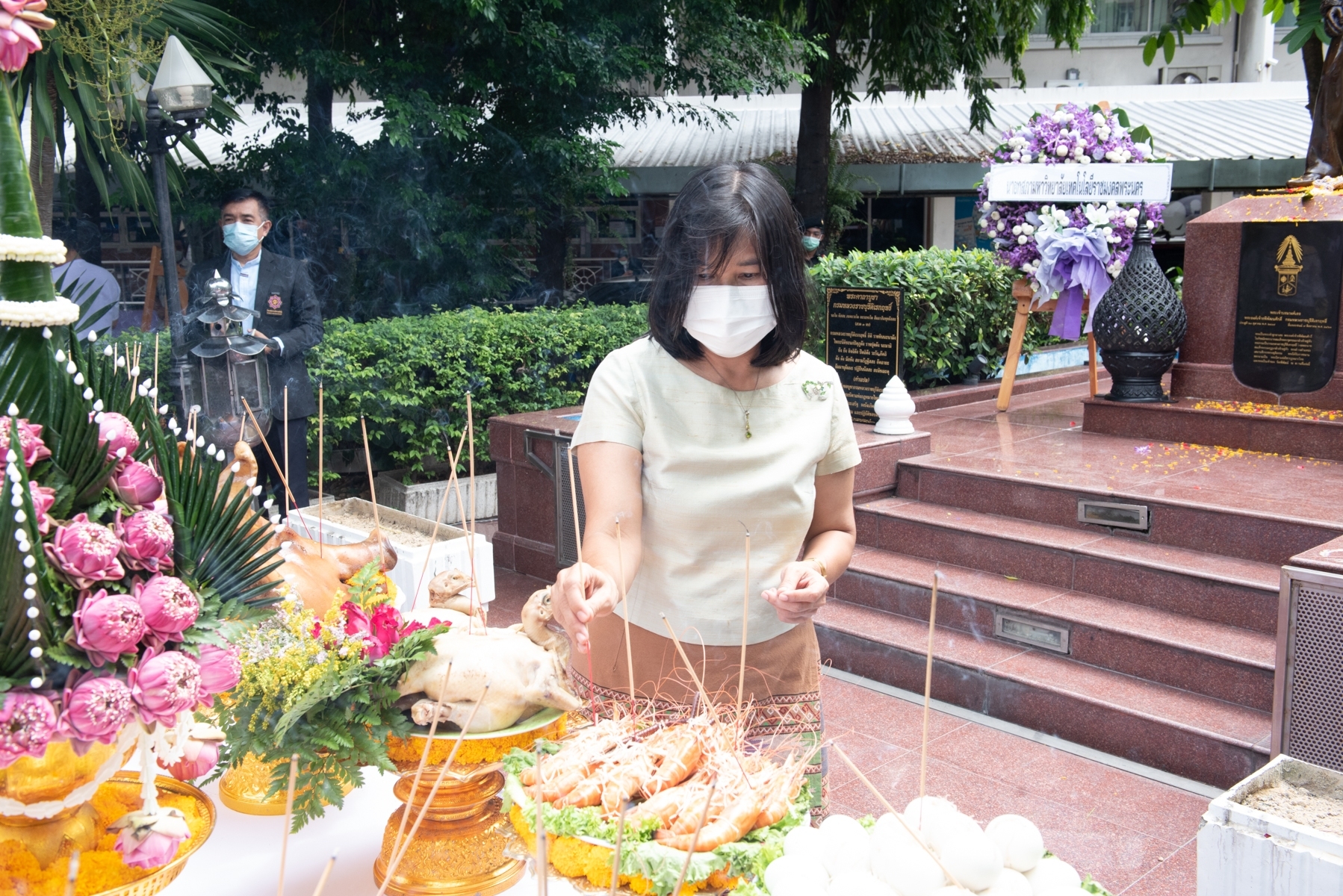ต่อมาในเวลา 10.19 น. ศ.ดร.สุรพงษ์ โสธนะเสถียร นายกสภามหาวิทยาลัย ม.ร.ว.พรระพี อาภากร คุณสุทธาจรี ปาลกะวงศ์ ณ อยุธยา และ ดร.ณัฐวรพล รัชสิริวัชรบุล รักษาราชการแทนอธิการบดี ร่วมพิธีบวงสรวงในโอกาสวันคล้ายวันสิ้นพระชนม์ พระเจ้าบรมวงศ์เธอ ฯ กรมหลวงราชบุรีดิเรกฤทธิ์ และขอขมาในการปรับภูมิทัศน์ลานพระอนุเสาวรีย์กรมหลวงราชบุรีดิเรกฤทธิ์ พิธีวางพวงมาลา และกล่าวสดุดีเทิดพระเกียรติ เพื่อน้อมรำลึกถึงพระกรุณาธิคุณของกรมหลวงราชบุรีดิเรกฤทธิ์ พระบิดาแห่งกฎหมายไทยและเจ้าของพื้นที่วังรพี ซึ่งเป็นที่ตั้งของ มทร.พระนคร ในปัจจุบัน ณ ลานพระอนุสาวรีย์กรมหลวงราชบุรีดิเรกฤทธิ์ มทร.พระนคร ศูนย์เทเวศร์ ทั้งนี้ภายในงานยังได้มีพิธีเททองหล่อพระรูปเหมือนพระเจ้าบรมวงศ์เธอ ฯ กรมหลวงราชบุรีดิเรกฤทธิ์ ในโอกาสการจัดสร้างเหรียญและพระรูปเหมือนเพื่อจัดสร้างวัตถุมงคลสำหรับบุคลากรและประชาชนทั่วไปเช่าบูชาต่อไป