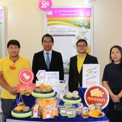 ทั้งนี้ มหาวิทยาลัยเทคโนโลยีราชมงคลพระนคร นำเสนอผลงานวิจัยเรื่อง การพัฒนาและสร้างเครื่องจักรสำหรับการผลิตขนมหวานพื้นเมือง จ.เพชรบุรี แบบใหม่ด้วยเทคโนโลยีที่เหมาะสม โดย ดร.ชลากร อุดมรักษาสกุลและคณะ ผลงานวิจัยดังกล่าว อยู่ภายใต้ชุดโครงการสร้างนวัตกรรมและเพิ่มมูลค่าผลิตภัณฑ์หนึ่งตำบลหนึ่งผลิตภัณฑ์ (OTOP) ประเภทขนมหวานพื้นเมืองเพื่อสุขภาพ จ.เพชรบุรี มีดร.ประกอบ ชาติภุกต์ เป็นหัวหน้าชุดโครงการ ซึ่งได้รับทุนวิจัยสนับสนุนจากสำนักงานคณะกรรมการส่งเสริมวิทยาศาสตร์ วิจัยและนวัตกรรม (สกสว.) และมหาวิทยาลัยเทคโนโลยีราชมงคลพระนคร