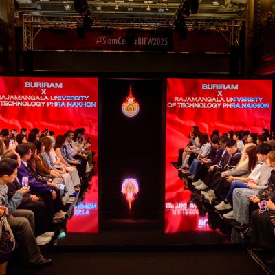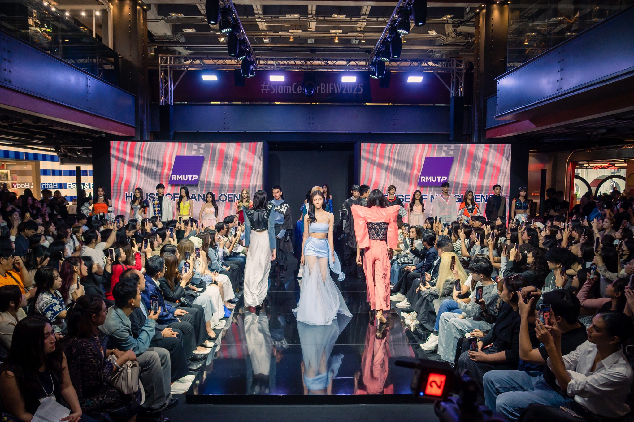 Bangkok International Fashion Week 2025 (BIFW 2025) – Visionary Stage at Siam Center จัดขึ้นต่อเนื่องทุกปี เพื่อเป็นเวทีในการส่งเสริมศักยภาพนักศึกษาจากสาขาออกแบบแฟชั่นได้แสดงความสามารถ และได้สัมผัสประสบการณ์ระดับมืออาชีพ โดยในปีนี้สยามเซ็นเตอร์ร่วมกับการท่องเที่ยวแห่งประเทศไทย (ททท.) และเอปสัน ประเทศไทย (Epson Thailand) นำเสนอคอลเลกชัน Siam Center X ททท. ตอน Thai Creative Experience ซึ่งได้นำผ้าไทยท้องถิ่น จากหลายจังหวัดมาเป็นองค์ประกอบหลักในการออกแบบ สะท้อนบทบาทของมหาวิทยาลัยในการส่งเสริมนวัตกรรมแฟชั่นไทยและการอนุรักษ์ภูมิปัญญาท้องถิ่นอย่างสร้างสรรค์ ซึ่งมีนักออกแบบรุ่นใหม่จาก 12 มหาวิทยาลัยชั้นนำของไทยมาแสดงผลงาน สำหรับคณะอุตสาหกรรมสิ่งทอและออกแบบแฟชั่น มหาวิทยาลัยเทคโนโลยีราชมงคลพระนคร (ราชมงคลพระนคร) ได้รับเกียรติให้นำผลงานของนักศึกษาร่วมโชว์ในวันเปิดงานครั้งนี้ จำนวน 23 ชุด พร้อมกับคอลเลคชั่นพิเศษ 2 ชุด ที่ทาง เก่ง-หฤษฎ์ บัวย้อย และ โยชิ-รินรดา ธุระพันธ์ ร่วมเป็นส่วนหนึ่งในการออกแบบ และถ่ายทอดผลงานบนรันเวย์ในรอบโชว์เปิดงาน โดยนำเสนอเอกลักษณ์ของ จังหวัดบุรีรัมย์ ผ่านแรงบันดาลใจจาก ผ้าซิ่นตีนแดง และปราสาทหินพนมรุ้ง นอกจากนี้ ยังมีผลงานของนักศึกษาที่มุ่งมั่นสร้างสรรค์ผลงานภายใต้แนวคิด Circular Economy เพื่อถ่ายทอดแฟชั่นแห่งอนาคตผ่านมุมมองของความยั่งยืน โดยการนำขยะแฟชั่นและวัสดุรีไซเคิล มาต่อยอดเป็นผลงานแฟชั่นร่วมสมัยที่เชื่อมโยงกับภูมิปัญญาท้องถิ่นและงานหัตถกรรมไทยอย่างสร้างสรรค์ หนึ่งในผลงานที่น่าสนใจ คือ ผลงานของนางสาวอังคนา ปัญญาดี นักศึกษาชั้นปีที่ 4 สาขาออกแบบแฟชั่นและสิ่งทอ คณะอุตสาหกรรมสิ่งทอและออกแบบแฟชั่น