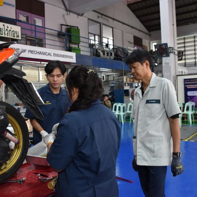 มหาวิทยาลัยเทคโนโลยีราชมงคลพระนคร (ราชมงคลพระนคร) คณะวิศวกรรมศาสตร์ สาขาวิชาช่างยนต์ จัดโครงการการส่งเสริมความปลอดภัยทางถนนผ่านการตรวจสภาพรถจักรยานยนต์ก่อนการเดินทางช่วงเทศกาลปีใหม่ 2569 เป็นการเตรียมความพร้อมให้กับประชาชนทั่วไปที่มีแผนเดินทางด้วยรถจักรยานยนต์ในช่วงเทศกาลปีใหม่นี้ ดังนั้น การตรวจเช็กเครื่องยนต์และอุปกรณ์จึงเป็นสิ่งสำคัญ และลดความเสี่ยงต่อการเกิดอุบัติเหตุบนท้องถนน อาจารย์สถาพร วันนาพ่อ หัวหน้าสาขาวิชาช่างยนต์ จึงนำอาจารย์และนักเรียนระดับประกาศนียบัตรวิชาชีพ (ปวช.) ให้บริการตรวจสภาพและเปลี่ยนถ่ายน้ำมันเครื่องและน้ำมันเฟืองท้ายรถจักรยานยนต์ขนาดไม่เกิน 160 ซีซี โดยใช้ทักษะและความรู้จากห้องเรียนในการปฏิบัติเพื่อให้เกิดความชำนาญในสายอาชีพ ณ ราชมงคลพระนคร ศูนย์พระนครเหนือ เมื่อวันที่ 15 ธันวาคม 2569