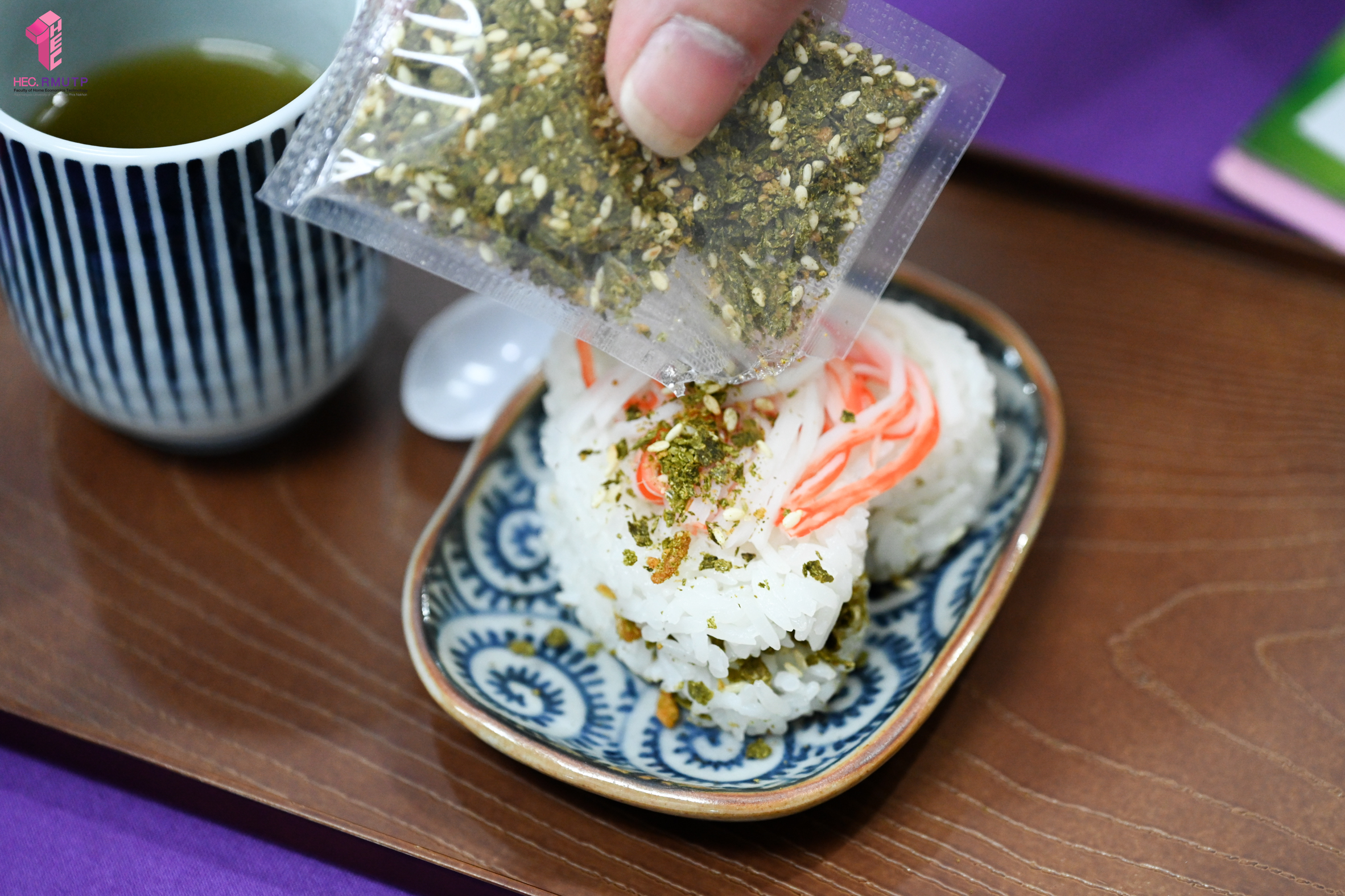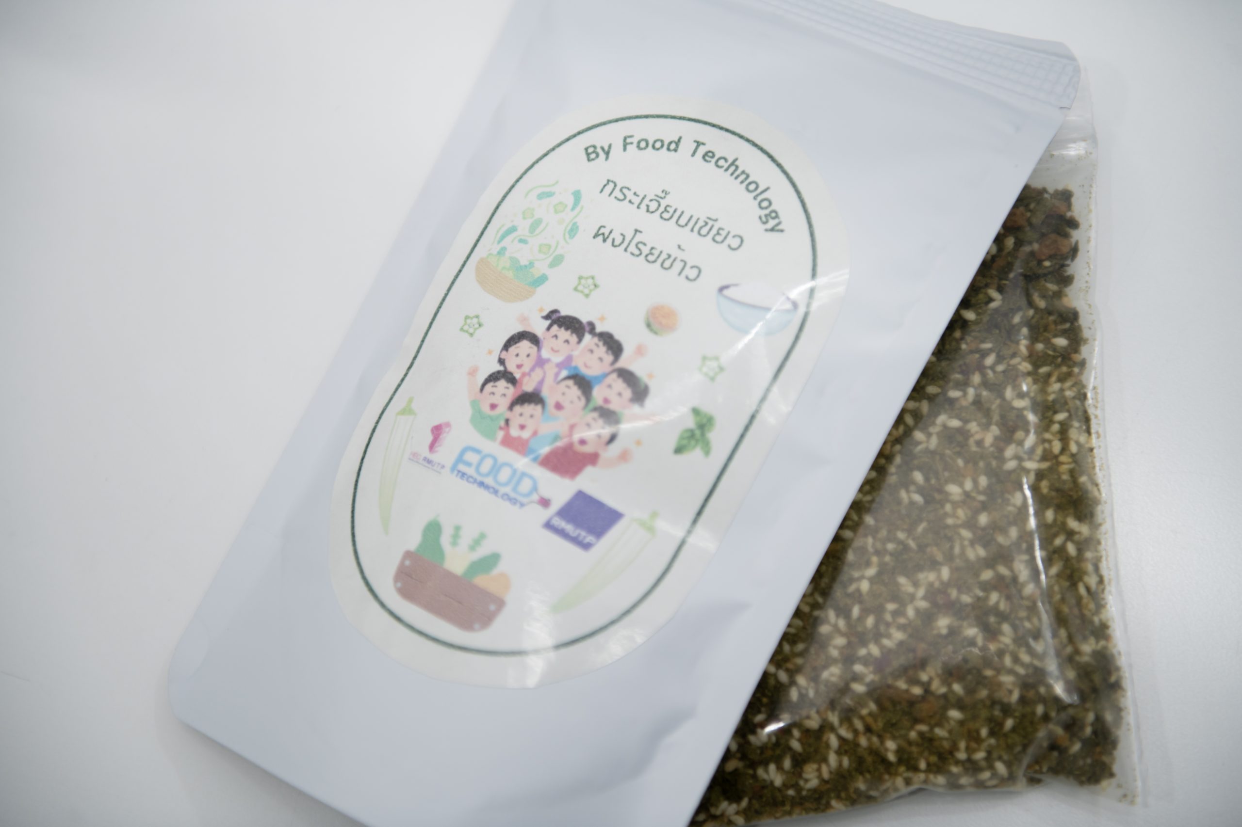 กระเจี๊ยบเขียว เป็นพืชผักที่นิยมนำมารับประทานกับน้ำพริก ซึ่งอุดมไปด้วยประโยชน์จำนวนมากทั้ง โปรตีน แคลเซียม ฟอสฟอรัส วิตามินบี1-บี2 ฯลฯ และช่วยเรื่องของระบบทางเดินอาหาร ควบคุมระดับน้ำตาล ไขมันในเลือด แต่ไม่นิยมในผู้บริโภคยุคใหม่มากนัก เนื่องจากกระเจี๊ยบเขียวสดจะมีกลิ่นเหม็นเขียว ต้องนำไปปรุงสุกในเมนูต่าง ๆ เพื่อเพิ่มความสะดวกในการรับประทานกระเจี๊ยบเขียว นักศึกษาสาขาวิชาเทคโนโลยีอาหาร คณะเทคโนโลยีคหกรรมศาสตร์ มหาวิทยาลัยเทคโนโลยีราชมงคลพระนคร (ราชมงคลพระนคร) จึงสร้างสรรค์ผลิตภัณฑ์กระเจี๊ยบเขียวผงโรยข้าว (Roselle Rice Seasoning) ซึ่งเป็นหนึ่งในรายวิชาการพัฒนาผลิตภัณฑ์อาหาร เพื่อฝึกให้นักศึกษาได้ฝึกคิด ทดลอง และลงมือปฏิบัติจริง โดยนำความรู้จากในห้องเรียนมาประยุกต์ใช้