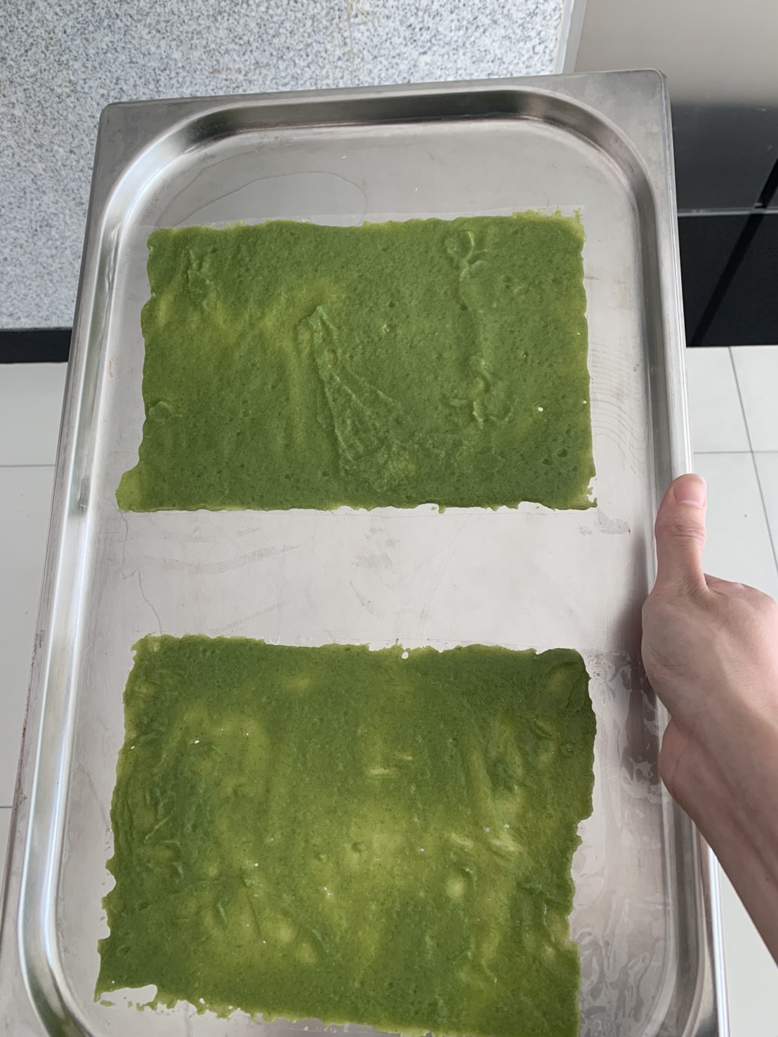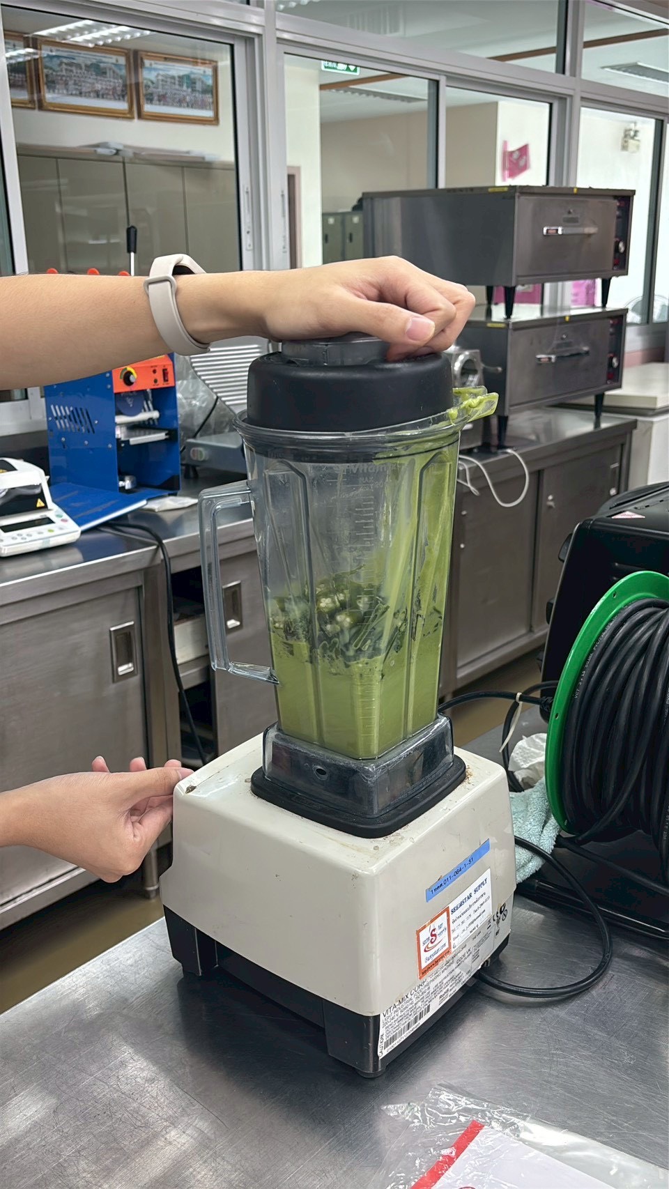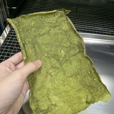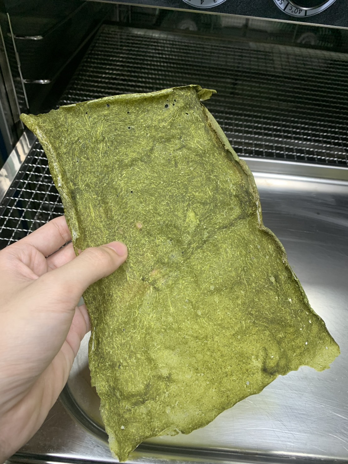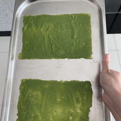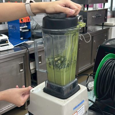วุฒิ เล่าต่อว่า ส่วนผสมในผลิตภัณฑ์ที่นำมาผลิต ประกอบด้วย กระเจี๊ยบเขียวสด 1 กิโลกรัม ผักหวานป่า 500 กรัม และผิวเปลือกส้มซ่า 20 กรัม ซึ่งมีขั้นตอนง่าย ๆ เพียง น้ำส่วนผสมทั้งหมดล้างให้สะอาด แช่กระเจี๊ยบเขียวในน้ำเกลือนาน 15 นาที ล้างน้ำอีกครั้งก่อนนำมาหั่นเป็นชิ้น และนำไปแช่น้ำต้มเดือด หลังจากนั้นบีบเอาเมือกบางส่วนใส่ภาชนะ ก่อนนำไปปั่นรวมกับผักหวานป่า เปลือกส้มซ่า แซนแทนกัม (Xanthan Gum) หรือสารเพิ่มความหนืดในอาหาร และเมือกกระเจี๊ยบเขียว ขั้นตอนต่อไปให้เทลงบนถาดให้เป็นแผ่นบาง นำไปอบด้วยอุณหภูมิ 60 องศาเซลเซียส ประมาณ 4-6 ชั่วโมง เมื่อแห้งดีแล้วนำไปปั่นให้เป็นชิ้นเล็ก ๆ และปรุงรสตามต้องการ โดยกระบวนการทั้งหมดนี้ได้เรียนรู้จากในห้องเรียน โดยมี ผศ.ชมภูนุช เผื่อนพิภพ อาจารย์ประจำวิชาคอยให้คำปรึกษา ทั้งการเลือกการใช้สารแต่ละชนิด การนำเทคโนโลยีมาประยุกต์ใช้ ซึ่งผลงานนี้สามารถนำไปพัฒนาในเมนูต่าง ๆ เพื่อต่อยอดสร้างมูลค่าเพิ่มให้กับผลิตภัณฑ์