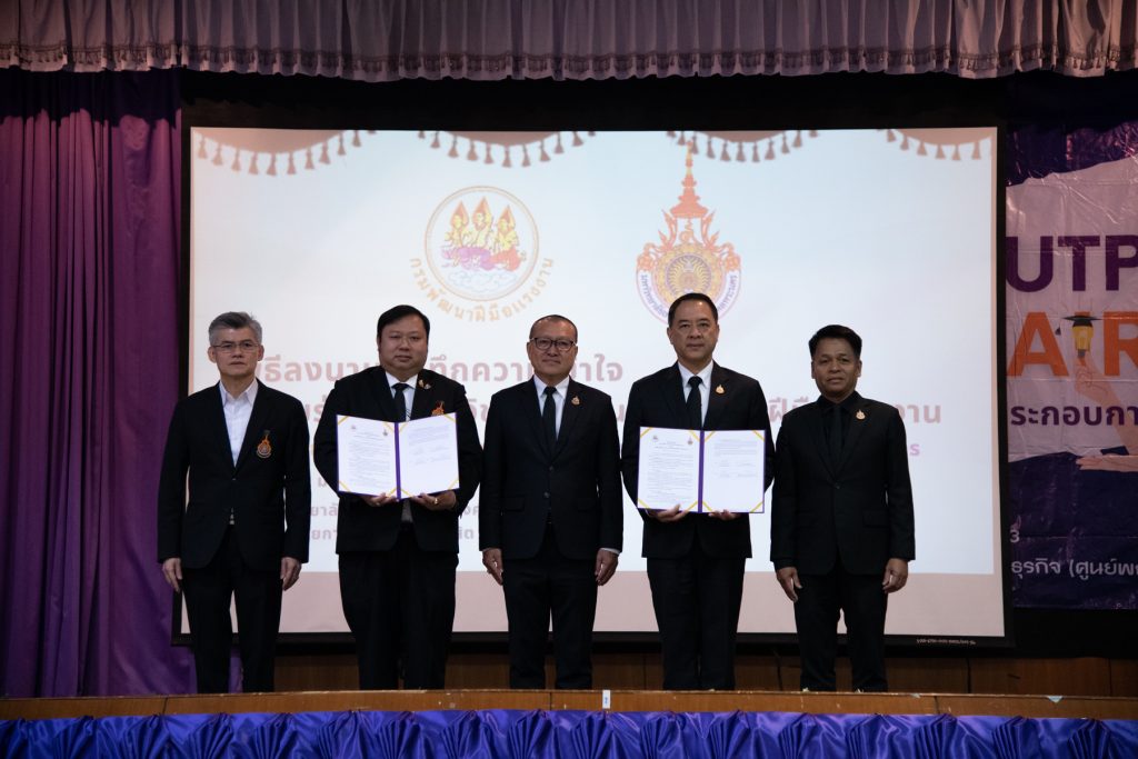 คุณสันติ นันตสุวรรณ กล่าวว่า พิธีลงนามบันทึกความเข้าใจทางวิชาการด้านการพัฒนาฝีมือแรงงาน เป็นหนึ่งในกิจกรรมที่จัดขึ้นภายใต้โครงการ RMUTP Job Fair (นัดพบสถานประกอบการ) ซึ่งเป็นการแสดงพลังความร่วมมือของทั้งสองหน่วยงานที่ต้องการยกระดับทักษะกำลังคนให้พร้อมแข่งขันในตลาดโลก ซึ่งสถานศึกษาถือเป็นกลไกสำคัญในการสร้างทักษะระดับสูง โดยปัจจุบันราชมงคลพระนครจัดตั้งศูนย์ทดสอบมาตรฐานฝีมือแรงงานถึง 6 สาขา อาทิ ด้านการตัดเย็บ การจัดดอกไม้ และการประกอบอาหารไทยระดับ 1 และ 2 ดังนั้น พิธีลงนามครั้งนี้จะเป็นการทำงานที่ชัดเจนมากยิ่งขึ้นระหว่างสองหน่วยงานผ่าน 3 ด้านหลัก คือ การพัฒนาหลักสูตรสมัยใหม่ ที่ครอบคลุมทั้งด้านระบบอัตโนมัติ หุ่นยนต์ ดิจิทัล ภาคบริการ และภาษาต่างประเทศ การเชื่อมโยงระบบการศึกษา โดยส่งเสริมการเทียบโอนหน่วยกิตหรือระบบธนาคารหน่วยกิต (Credit Bank) และโครงการสหกิจศึกษา สำหรับค่าใช้จ่ายที่เกิดขึ้นสถานประกอบการสามารถนำมาลดหย่อนภาษีได้ตามพระราชบัญญัติส่งเสริมการพัฒนาฝีมือแรงงาน พ.ศ.2545 และการเพิ่มศูนย์ทดสอบมาตรฐาน เพิ่มอีก 3 สาขา คือ ช่างมคคาทรอนิกส์และหุ่นยนต์ ช่างควบคุม PLC ช่างควบคุมหุ่นยนต์อุตสาหกรรม