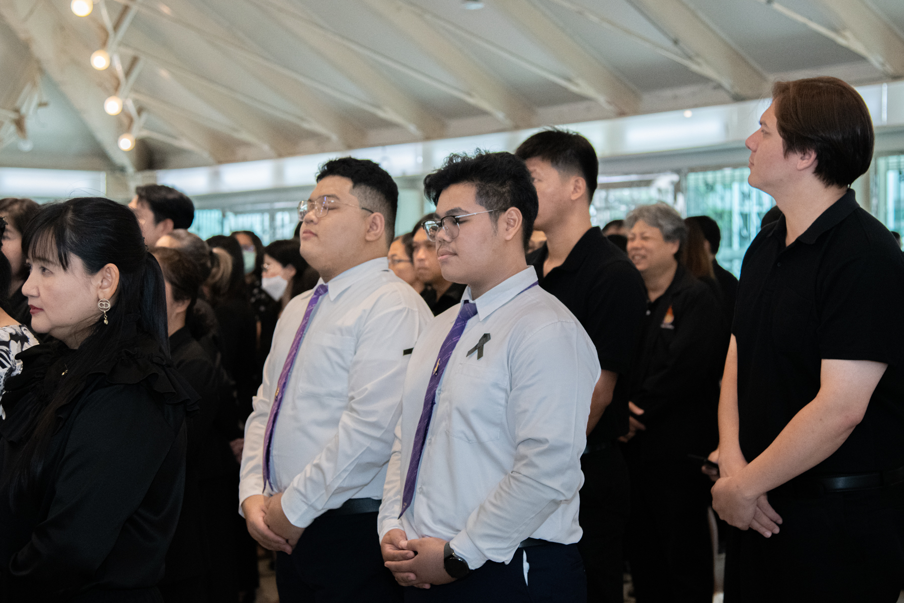อธิการบดี กล่าวแสดงความอาลัยต่อการสวรรคต สมเด็จพระบรมราชชนนีพันปีหลวง ใจความตอนหนึ่งว่า “ข้าพระพุทธเจ้าตระหนักรู้และสำนึกในพระมหากรุณาธิคุณแห่งใต้ผ้าละอองธุลีพระบาท คุ้มเกล้า คุ้มกระหม่อม อยู่เช้าค่ำ ด้วยทรงพระวิริยะอุตสาหะเสด็จพระราชเนินเคียงข้างพระบาทสมเด็จพระบรมชนกาธิเบศร มหาภูมิพลอดุลยเดชมหาราช บรมนาถบพิตร ไปทรงปฏิบัติพระราชกรณียกิจน้อยใหญ่เป็นอเนกปริยาย ใต้ฝ้าละอองธุลีพระบาททรงเอาพระราชหฤทัยใส่ในสรรพทุกข์สุขของราษฎร โดยเจตสำนงหมายจะทรงแบ่งเบาพระราชภาระของพระบาทสมเด็จพระเจ้าอยู่ตั้งแต่เมื่อครั้งต้นแผ่นรัชกาลก่อน จวบจนรัชกาลปัจจุบัน โดยเฉพาะในด้านการส่งเสริมศิลปาชีพ พระองค์ไม่เพียงแต่ทรงมีความเชี่ยวชาญหากทรงเอาพระราชหฤทัยใส่ในการอันนั้นเป็นอย่างดียิ่ง ทำให้ราษฎรมีคุณภาพชีวิตที่ดีขึ้น พระมหากรุณาธิคุณทั้งนั้น ยังกระจ่างชัดอยู่ในมโนสำนึกของปวงข้าพระพุทธเจ้า จึงทรงสถิตเป็นนิ่งขวัญ ประทับมั่นอยู่กลางดวงใจ คนไทยทุกคน ทั้งในฐานะ สมเด็จพระบรมราชชนนีพันปีหลวง ในองค์พระบาทสมเด็จพระเจ้าอยู่หัว และในฐานะ แม่แห่งแผ่นดิน”