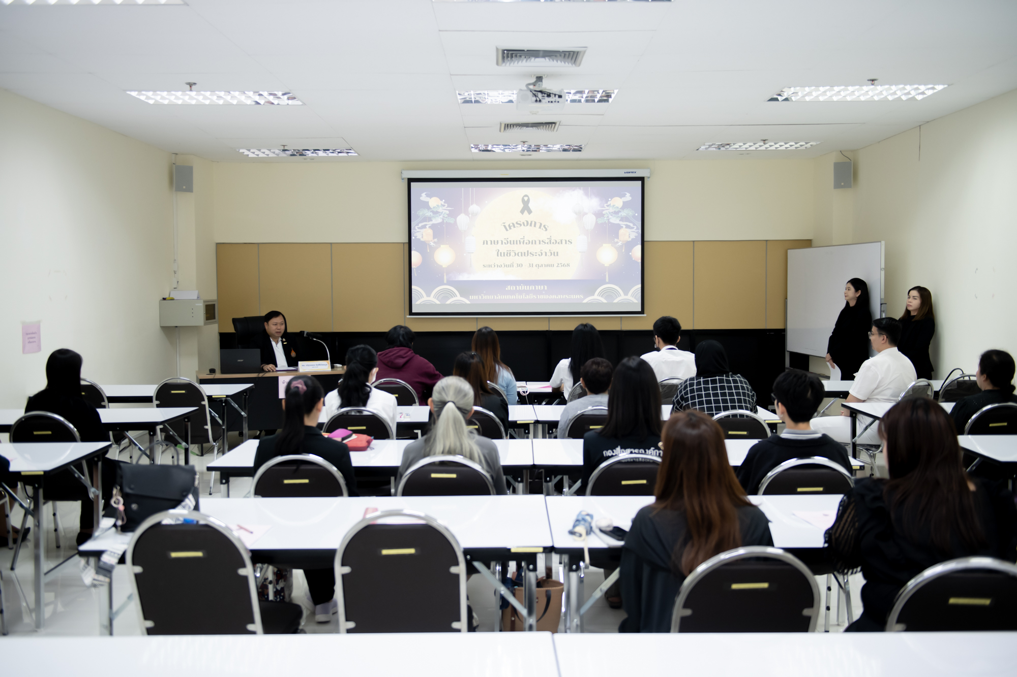 โครงการภาษาจีนเพื่อการสื่อสารในชีวิตประจำวัน จัดโดย สถานบันภาษา มหาวิทยาลัยเทคโนโลยีราชมงคลพระนคร (ราชมงคลพระนคร) ระหว่างวันที่ 30-31 ตุลาคม 2568 เพื่อพัฒนาทักษะการสื่อสารภาษาจีน ให้แก่ อาจารย์ บุคลากร นักศึกษาของราชมงคลพระนคร โดยได้รับเกียรติจาก ดร.ณัฐวรพล รัชสิริวัชรบุล อธิการบดี เป็นประธานในพิธีเปิด ณ อาคารราชบุรีดิเรกฤทธิ์ ราชมงคลพระนคร ศูนย์เทเวศร์