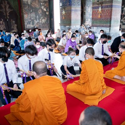 เมื่อวันที่ 8 กรกฎาคม 2565 ดร.ณัฐวรพล รัชสิริวัชรบุล อธิการบดีมหาวิทยาลัยเทคโนโลยีราชมงคล (มทร.) พระนคร พร้อมด้วยผู้บริหาร อาจารย์ บุคลากร และนักศึกษา เข้าร่วมโครงการสืบสานประเพณีและวันสำคัญ ในกิจกรรมที่ 4 กิจกรรมราชมงคลพระนครสืบสานพระพุทธศาสนา ถวายเทียนพรรษา ประจำปี 2565 จัดโดยกองศิลปวัฒนธรรม ณ วัดโสมนัสวิหาร แขวงวัดโสมนัส เขตป้อมปราบศัตรูพ่าย กรุงเทพมหานคร โดยมีวัตถุประสงค์เพื่อให้ผู้บริหาร คณาจารย์ บุคลากร และนักศึกษาได้มีส่วนร่วมในการส่งเสริมและสืบสานประเพณีถวายเทียนพรรษาให้คงอยู่สืบไป และเพื่อปลูกจิตสำนึกถึงหน้าที่ของคนไทยในการอนุรักษ์สืบสาน ส่งเสริมศิลปวัฒนธรรมอันดีงาม ตลอดจนเป็นการน้อมนำหลักธรรมคำสั่งสอนไปประพฤติปฏิบัติอย่างถูกต้อง ปีนี้ได้รับความร่วมมือจากคณาจารย์และนักศึกษาจากคณะเทคโนโลยีคหกรรมศาสตร์ ประดับตกแต่งต้นเทียนพรรษา นักศึกษาคณะสถาปัตยกรรมศาสตร์และการออกแบบ ร่วมยกต้นเทียนเวียนรอบพระอุโบสถ และคณะนักศึกษารำนำขบวนจากคณะศิลปศาสตร์