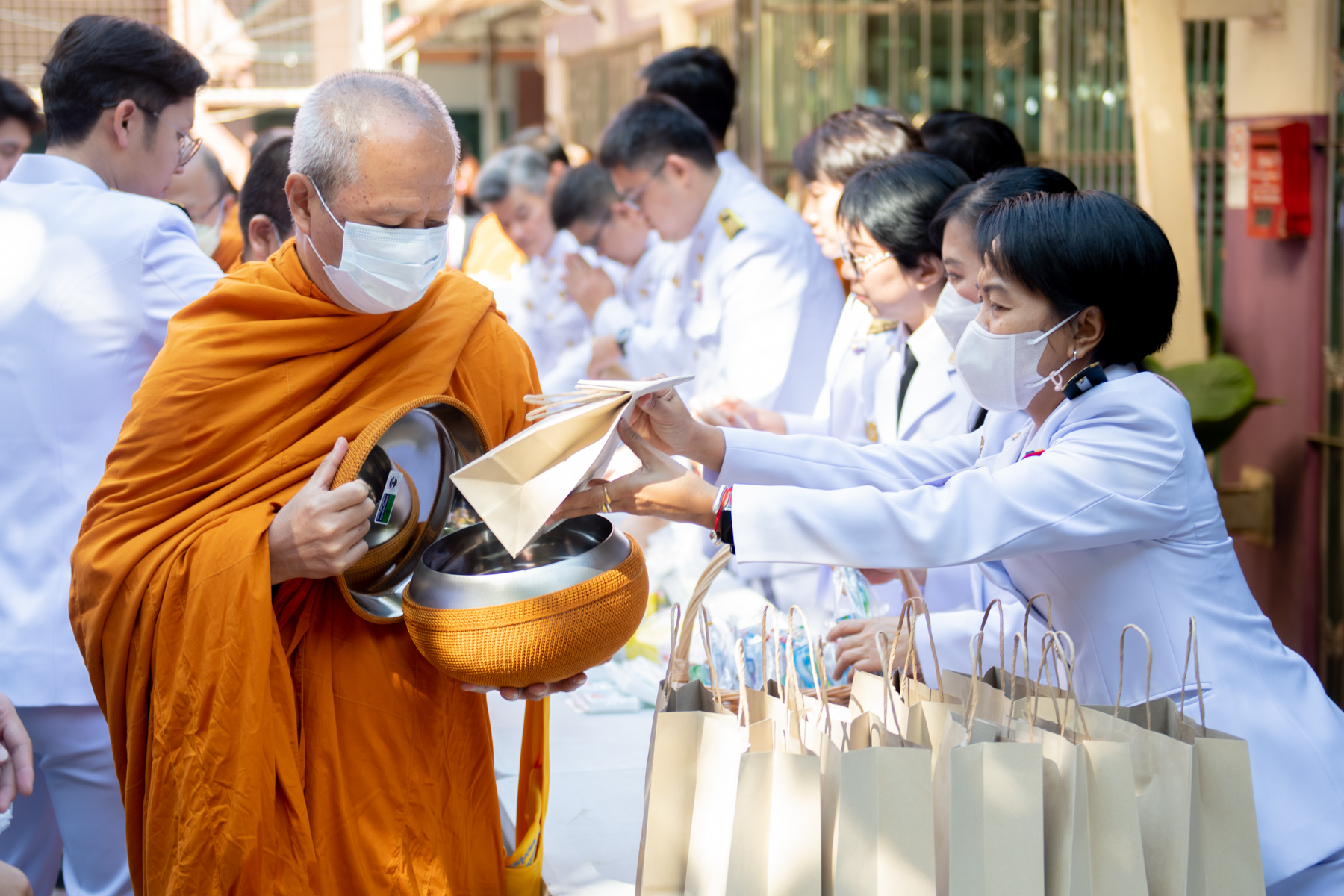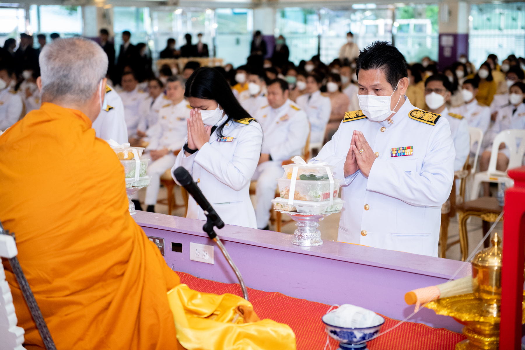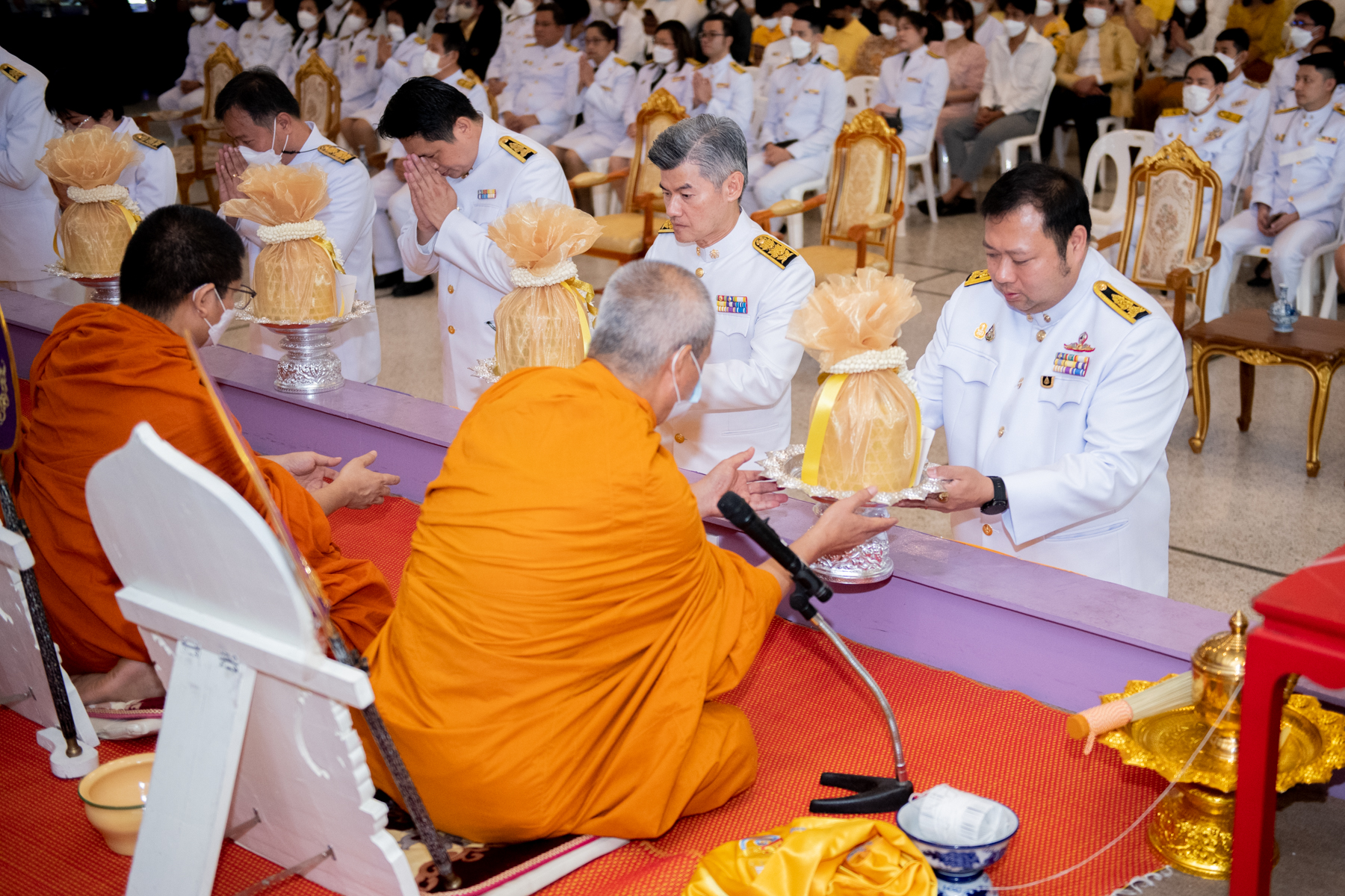 ทั้งนี้กิจกรรมเริ่มจาก พิธีสงฆ์ พระสงฆ์ จำนวน 10 รูป จากวัดโสมนัสราชวรวิหาร เจริญพระพุทธมนต์ และถวายจตุปัจจัยไทยธรรม หลังจากนั้นเป็นการตักบาตรเครื่องอุปโภคสำหรับพระสงฆ์ ต่อด้วยพิธีวางพานพุ่มถวายราชสักการะ เบื้องหน้าพระบรมฉายาลักษณ์ พระบาทสมเด็จพระเจ้าอยู่หัว และกล่าวถวายอาศิรวาทราชสดุดี และพิธีถวายสัตย์ปฏิญาณเพื่อเป็นข้าราชการที่ดี จากนั้นร่วมร้องเพลงสรรเสริญพระบารมี เพลงสดุดีจอมราชา และลงนามถวายพระพร