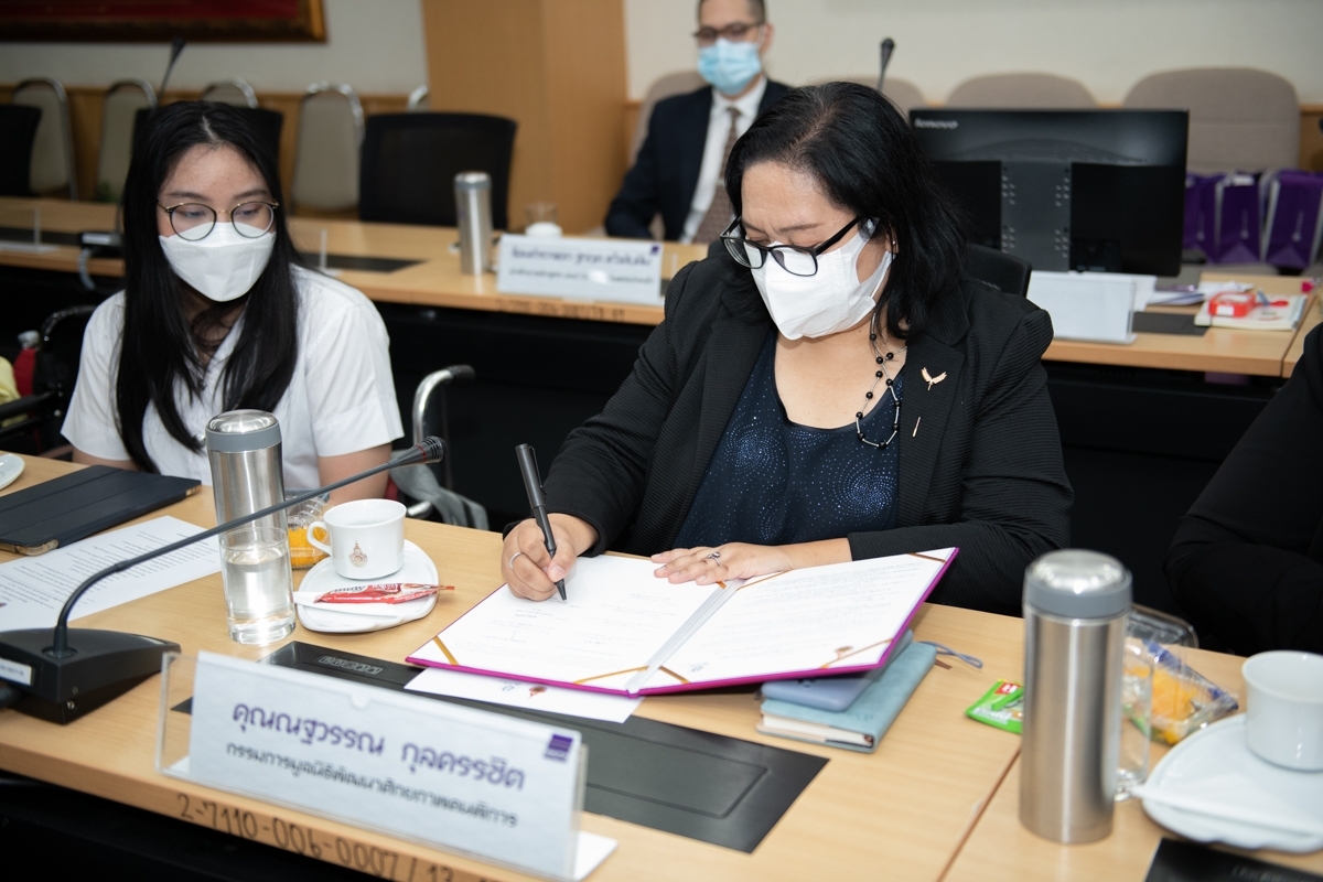 เมื่อวันที่ 21 มกราคม 2565 ดร.ณัฐวรพล รัชสิริวัชรบุล อธิการบดี มหาวิทยาลัยเทคโนโลยีราชมงคลพระนคร ลงนามบันทึกข้อตกลงความร่วมมือกับ นาวาอากาศเอก สถิตพงษ์ อธิภิรมย์ศรี ประธานกรรมการมูลนิธิพัฒนาศักยภาพคนพิการ เรื่องสร้างโอกาสด้านการศึกษาด้านการศึกษา สู่การพัฒนาอย่างเท่าเทียม โดยมีวัตถุประสงค์เพื่อพัฒนาหลักสูตร และจัดการเรียนการสอนเชิงบูรณาการ เพื่อพัฒนาบัณฑิตให้มีคุณภาพตามผลลัพธ์การเรียนรู้ที่หลักสูตรกำหนด โอกาสนี้คณะเทคโนโลยีคหกรรมศาสตร์ โดยอาจารย์ปิยะธิดา สีหะวัฒนกุล คณบดีคณะเทคโนโลยีคหกรรมศาสตร์ ได้นำเสนอผลงานการบูรณาการเรียนการสอนด้านศิลปะการประดิษฐ์ประดอยงานแกะสลัก งานดอกไม้และใบตอง ณ ห้องประชุมรพีพัฒน์ สำนักงานอธิการบดี มทร.พระนคร (ศูนย์เทเวศร์) และผ่านระบบออนไลน์