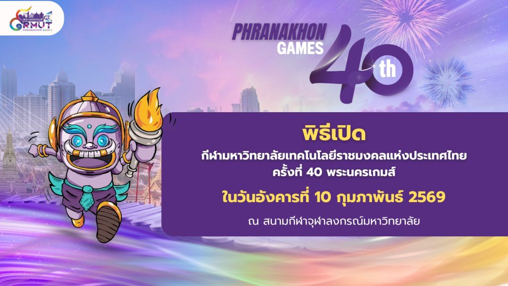 การแข่งขันกีฬามหาวิทยาลัยเทคโนโลยีราชมงคลแห่งประเทศไทย ครั้งที่ 40 “พระนครเกมส์” จัดขึ้นภายใต้คอนเซปต์ Phra Nakhon Games Go Green: Game On, Green On. โดยมหาวิทยาลัยเทคโนโลยีราชมงคลพระนคร (ราชมงคลพระนคร) เป็นเจ้าภาพในการจัดการแข่งขันฯ ในปีนี้มีนักกีฬาจากมหาวิทยาลัยเทคโนโลยีราชมงคล 9 แห่ง ประกอบด้วย มหาวิทยาลัยเทคโนโลยีราชมงคลพระนคร มหาวิทยาลัยเทคโนโลยีราชมงคลธัญบุรี มหาวิทยาลัยเทคโนโลยีราชมงคลกรุงเทพ มหาวิทยาลัยเทคโนโลยีราชมงคลล้านนา มหาวิทยาลัยเทคโนโลยีราชมงคลศรีวิชัย มหาวิทยาลัยเทคโนโลยีราชมงคลสุวรรณภูมิ มหาวิทยาลัยเทคโนโลยีราชมงคลอีสาน มหาวิทยาลัยเทคโนโลยีราชมงคลรัตนโกสินทร์ และมหาวิทยาลัยเทคโนโลยีราชมงคลตะวันออก จำนวน 1,700 คน ร่วมแข่งขันชิงชัย 12 ชนิดกีฬา ได้แก่ ฟุตบอล ฟุตซอล บาสเกตบอล วอลเลย์บอล แบดมินตัน เทเบิลเทนนิส เปตอง หมากกระดาน ครอสเวิร์ด อี-สปอร์ต กรีฑา และเซปักตะกร้อ ระหว่างวันที่ 9 – 15 กุมภาพันธ์ 2569 ณ สนามกีฬามหาวิทยาลัยเทคโนโลยีราชมงคลพระนคร และสนามกีฬาภายนอกมหาวิทยาลัย ซึ่งการจัดกิจกรรมการแข่งขันนี้จัดขึ้นต่อเนื่องมาอย่างยาวนาน เพื่อส่งเสริมสร้างศักยภาพด้านกีฬา ส่งเสริมสุขภาวะที่ดี สร้างความสามัคคี และความสัมพันธ์อันดีระหว่างนักศึกษาทั้ง 9 ราชมงคล รวมถึง “การสร้างโอกาส” ให้นักศึกษาได้พิสูจน์ตัวเอง ก้าวข้ามความกลัว สู่สนามการแข่งขันที่ไม่ใช่แค่ผลแพ้ชนะ แต่เป็นการแสดงศักยภาพในตัวเอง