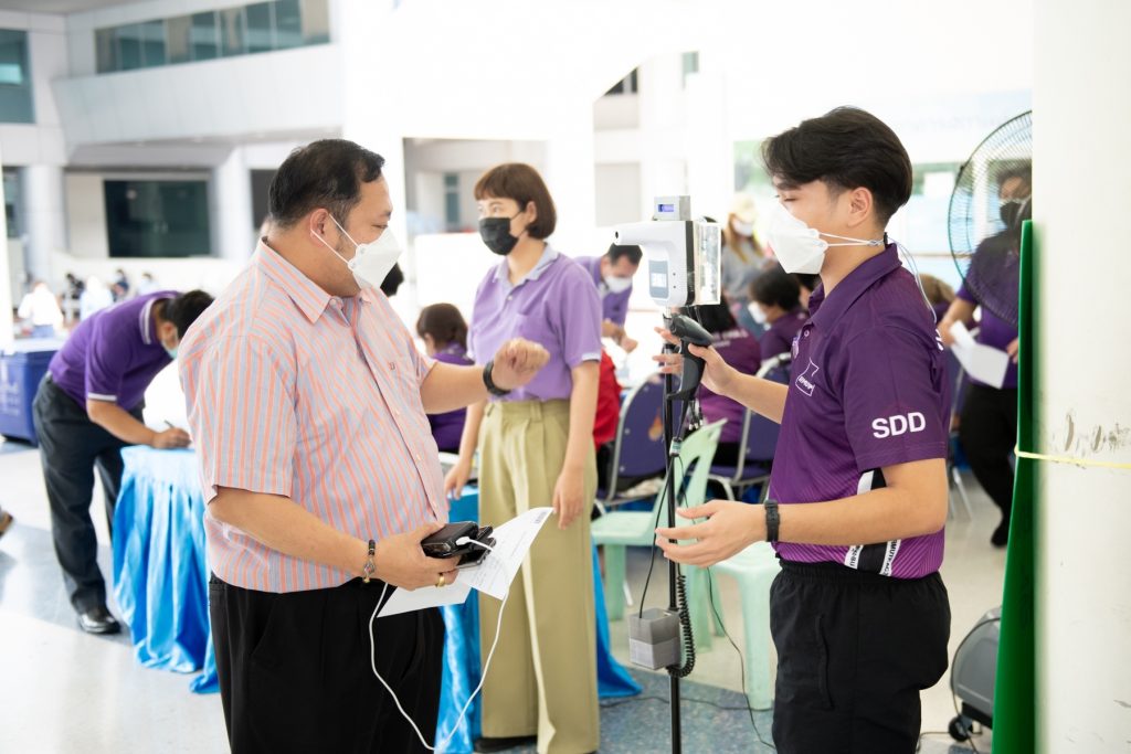 On May 25, 2022, President of Rajamangala University of Technology Phra Nakhon (RMUTP) – Phranakhon, visited a vaccination center to observe the administration of the fourth dose of the COVID-19 vaccine. This vaccination effort was a collaborative initiative between RMUTP – Phranakhon and the Ratchawithi Hospital. The vaccination campaign targeted staff members and students of RMUTP – Phranakhon, with a total of 1,112 individuals receiving the Pfizer vaccine.