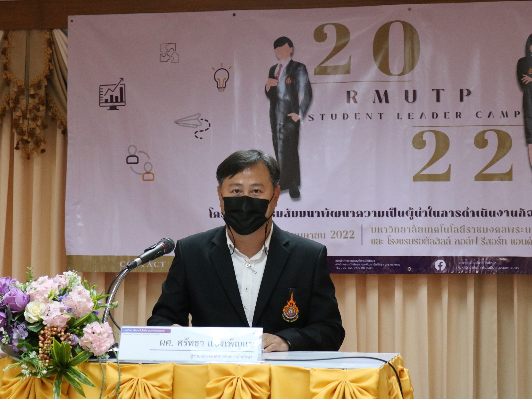 Led by the Student Council and Student Organizations, RMUTP organized a training seminar aimed at developing leadership skills in organizing student activities for the academic year 2022. The event, which took place on March 25, 2022, was presided over by Assistant Professor Sarathat Kaengpenkae, Assistant Vice President for Student Affairs, along with university administrators, staff, and student leaders from all nine faculties. The event gathered more than 80 participants at RMUTP and Royal Hills Golf Resort and Spa in Nakhon Nayok province, adhering to stringent health and safety measures to prevent the spread of COVID-19.