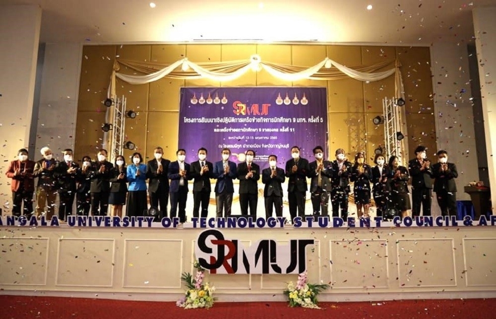 The distinguished event was graced by Dr. Dhanuch Tantetodit, Assistant Minister of Education, Science, Research, and Innovation (MESTI), as the Honorary Chairman of the opening ceremony and the exhibition showcasing students’ course-related projects from the 9 Rajamangala universities. The event attracted over 200 participants, including university executives, student affairs network personnel, and student leaders. The event served as an exchange of experiential learning in the realm of student affairs. It was geared towards enhancing collaboration within the student affairs network, encompassing both operational staff and student leaders, and ultimately contributing to the development of student affairs initiatives within all 9 Rajamangala universities.
