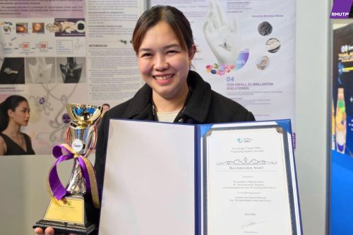 รศ.ดร.วิไลวรรณ ลีนะกุล อาจารย์คณะวิทยาศาสตร์และเทคโนโลยี มหาวิทยาลัยเทคโนโลยีราชมงคลพระนคร (ราชมงคลพระนคร) โชว์ศักยภาพรับรางวัลเหรียญทอง (Gold Medal) ผลงานเรื่อง “แก้วจากขี้เถ้าชีวมวลและโครงร่างแข็งของสัตว์ทะเลประเภทหมึกและหอย” หรือ Synthetic Gems Material Derived From The Squid Gladius รางวัล Best Innovation Award จาก Knowledge Transfer Office, Hong Kong Baptist University และรางวัล NRCT Honorable Mention Award จากสำนักงานการวิจัยแห่งชาติ (วช.) ในงาน The 51st International Exhibition of Inventions Geneva (GENEVA 2026) ณ Palexpo นครเจนีวา สมาพันธรัฐสวิส ซึ่งจัดขึ้นระหว่างวันที่ 11-15 มีนาคม 2569 ซึ่งสะท้อนความมุ่งมั่นสร้างสรรค์งานวิจัยและนวัตกรรม ที่ตอบสนองความต้องการของสังคมและชุมชน